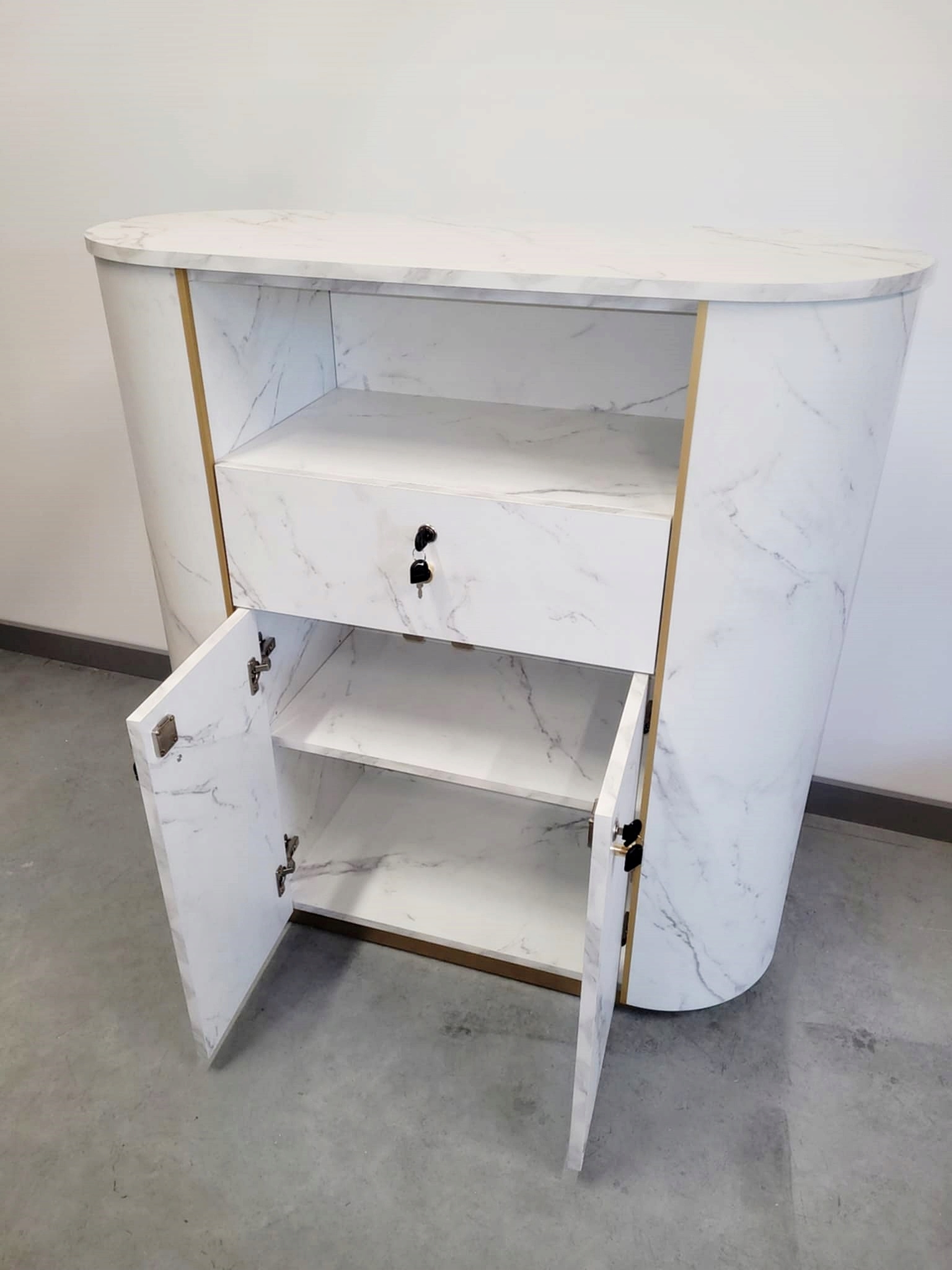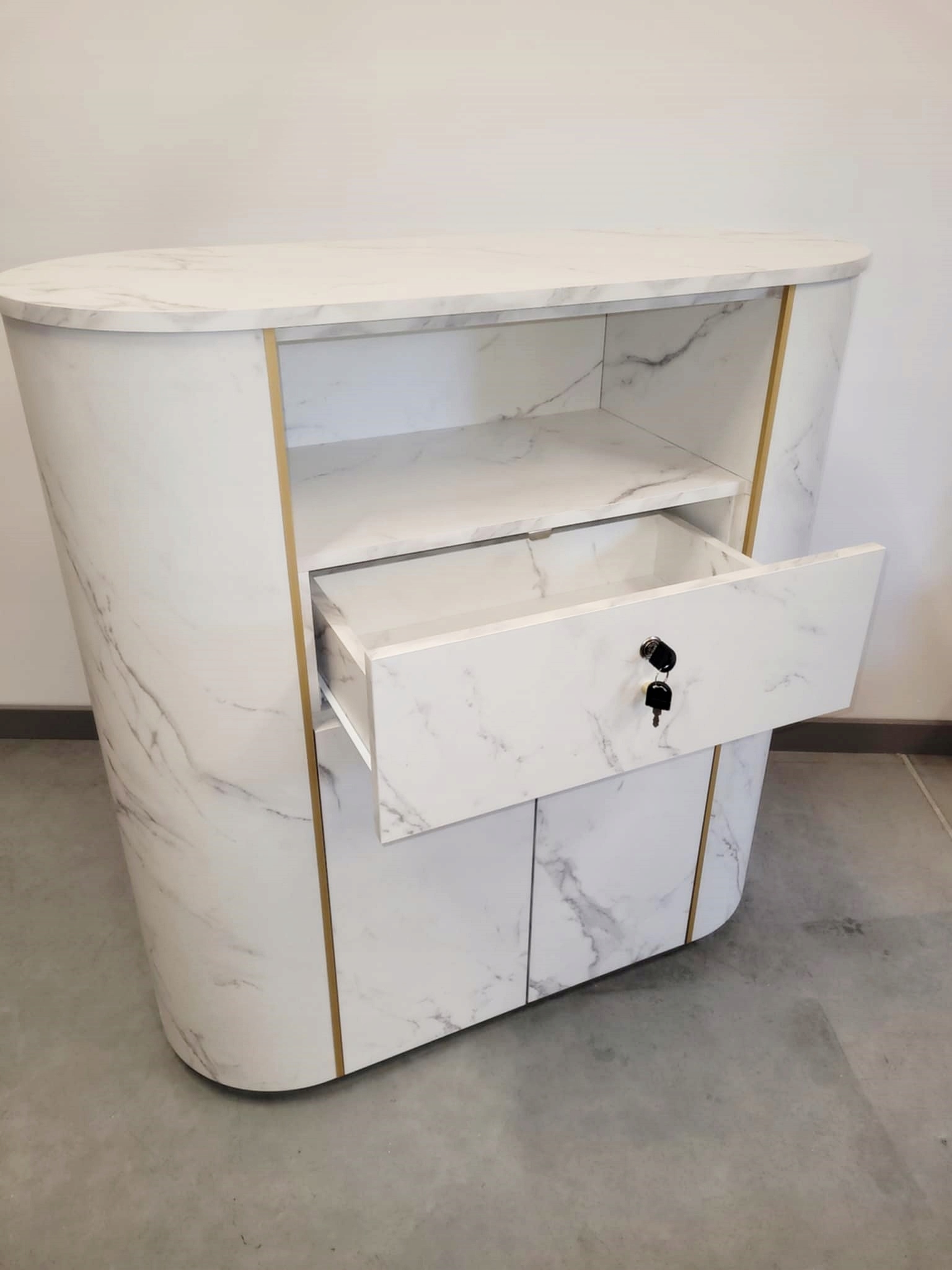 Aukcja dotyczy lady w dekorze imitacja marmuru.
