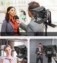 Teleprompter LENSGO o kompaktowej i aluminiowej konstrukcji, to proste i funkcjonalne narzędzie ułatwiające nagrywanie filmów wideo z przygotowanym wcześniej scenariuszem za pośrednictwem aparatu lub kamery.