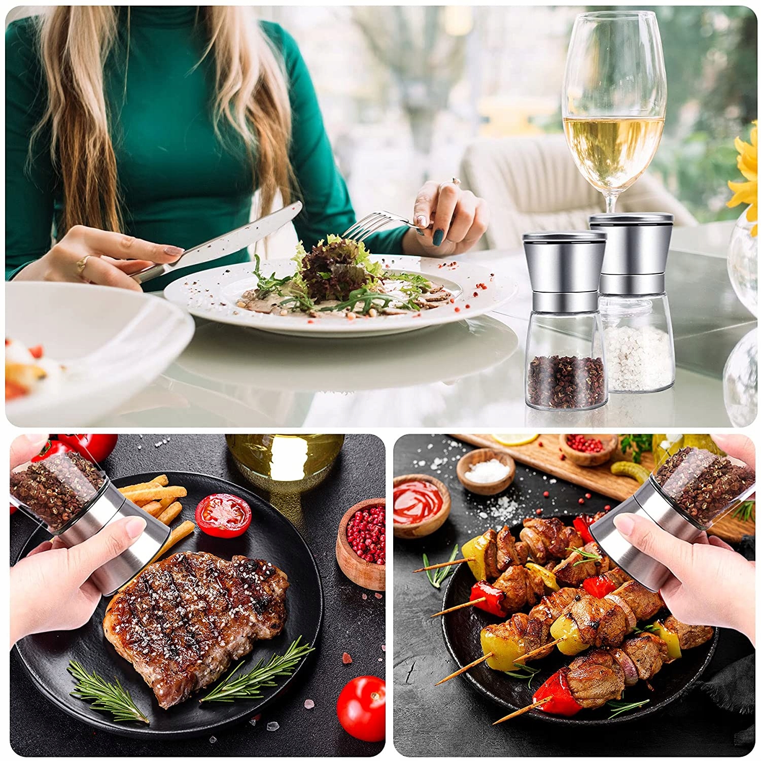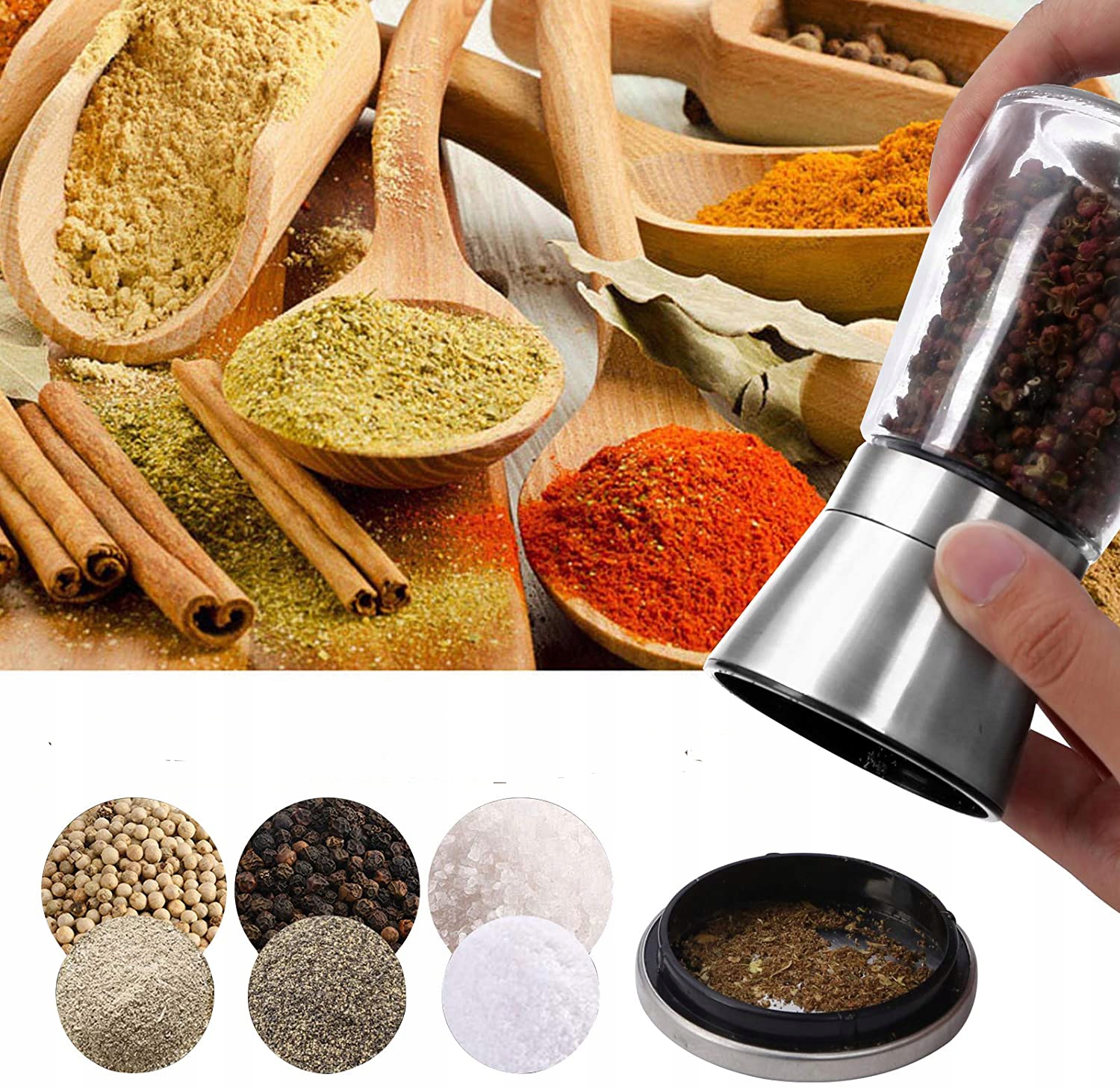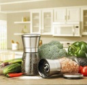 Pozwala także na stałe monitorowanie ilości przyprawy w pojemniku. Regulowany rozmiar mielonych cząstek zapewnia wszechstronność, umożliwiając wybór pomiędzy drobnym lub grubym mieleniem.