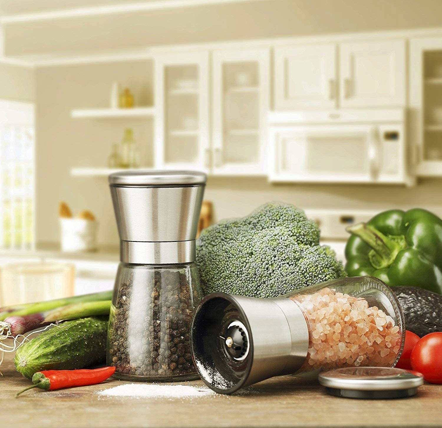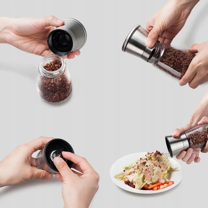 Zestaw młynków ręcznych do soli i pieprzu to must-have dla każdego, kto lubi gotować i ceni sobie świeżo zmielone przyprawy. Młynki posiadają skuteczny i efektywny ręczny mechanizm rozdrabniający sól i pieprz. Świeżo mielone przyprawy to smaczniejsze i bardziej aromatyczne dania. Obudowa ze szkła i metalu jest elegancka i trwała, a ceramiczny mechanizm gwarantuje skuteczność mielenia.