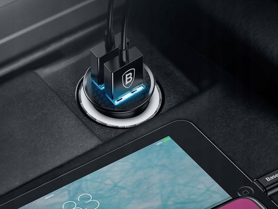 Baseus zastosował zaawansowane technologie szybkiego ładowania, dzięki czemu ładowarka obsługuje Quick Charge 3.0, AFC (Samsung), SCP (Huawei) oraz inne standardy. Oznacza to, że Twój telefon, tablet czy inne urządzenie mobilne naładują się znacznie szybciej niż przy użyciu zwykłej ładowarki – i to bez ryzyka przegrzania czy uszkodzenia baterii. Dwa porty USB pozwalają na jednoczesne ładowanie dwóch urządzeń, co jest szczególnie przydatne w podróży z pasażerem.