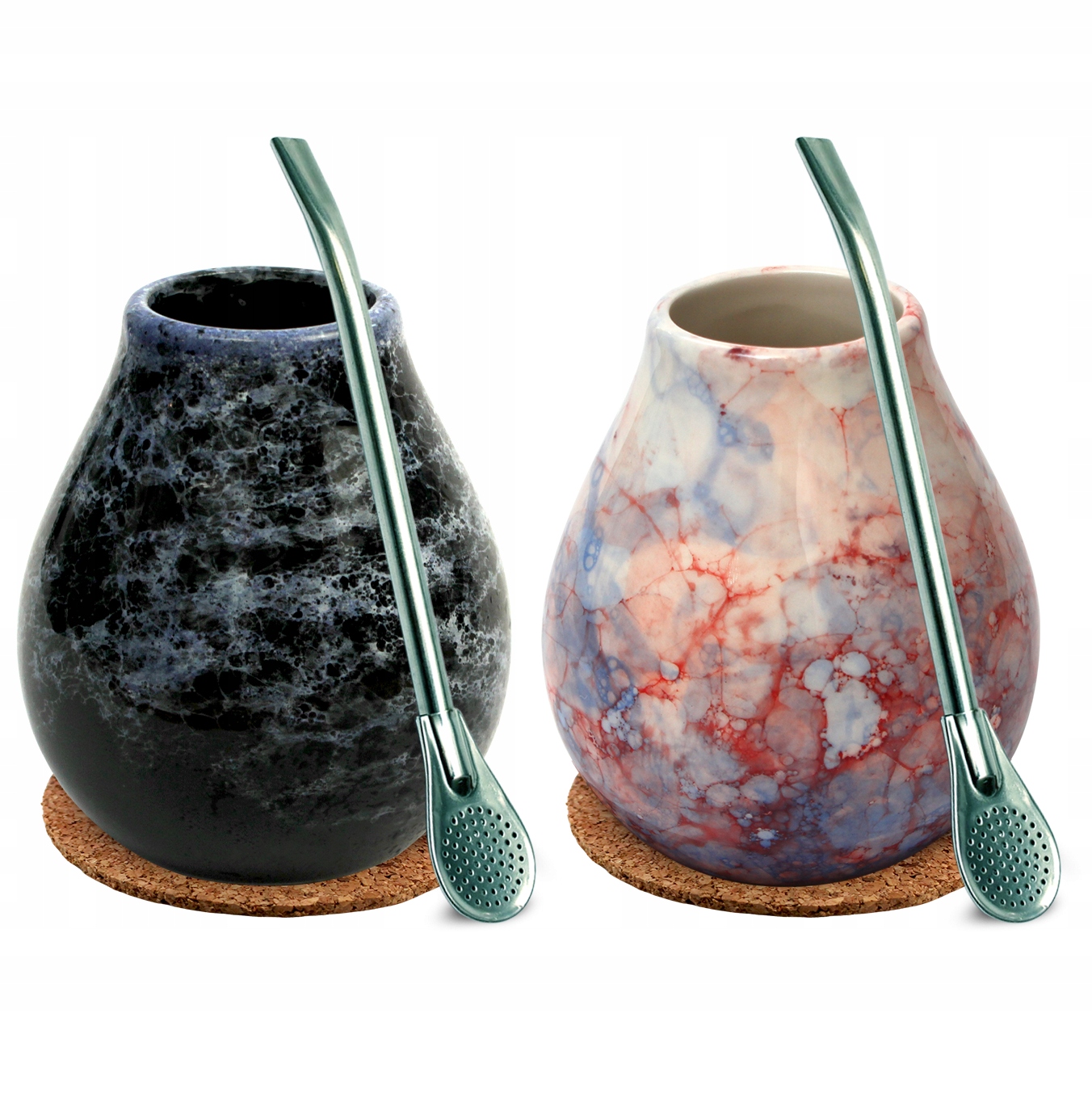 ✅ 2x Matero Ceramiczne szkliwione Caleidoscope i Marmol ~350 ml