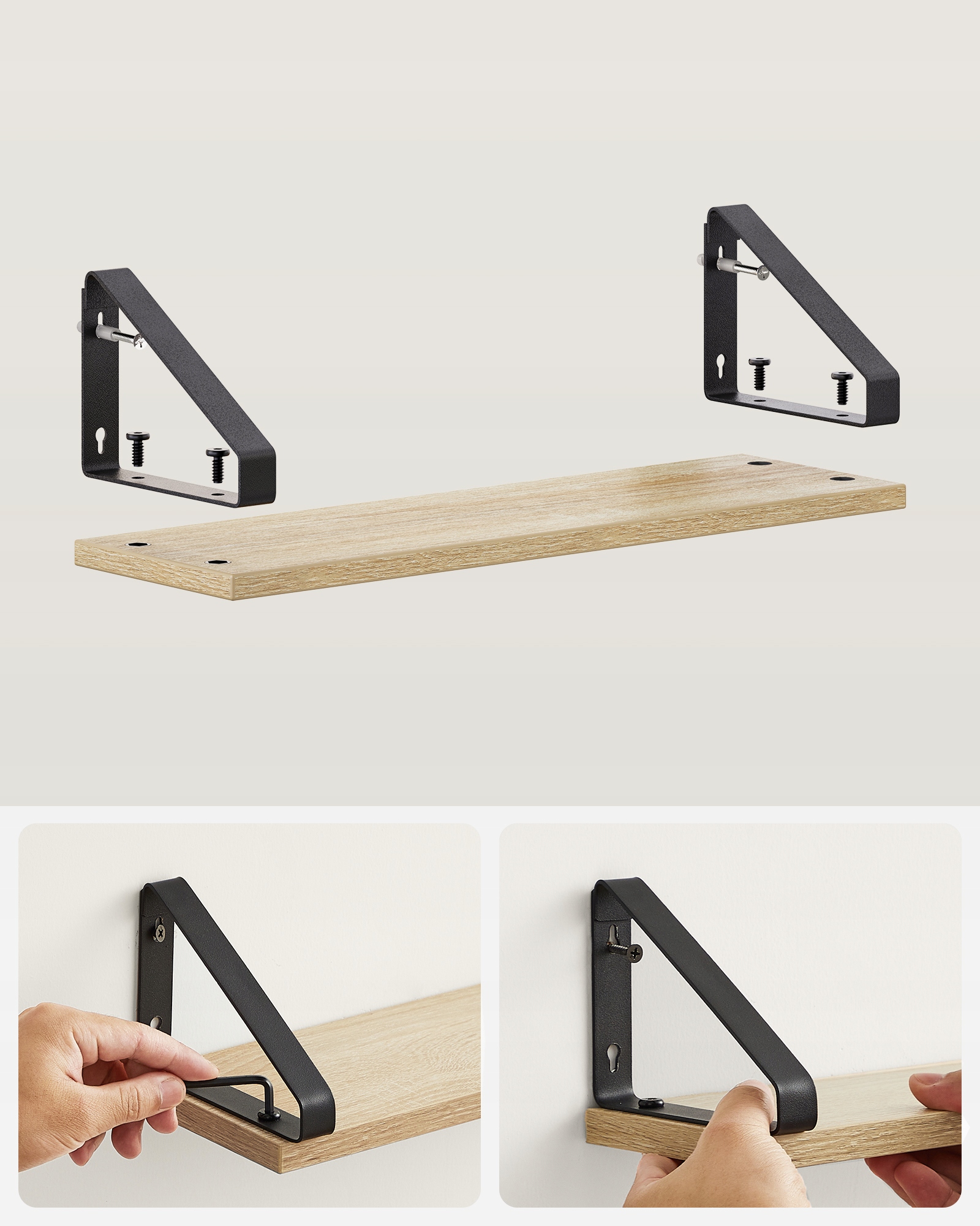 Stylowe półki w kolorze sonoma przydadzą się w salonie, przedpokoju, sypialni, pokoju dziennym a nawet w biurze. Prezentowane wiszącą półki ścienne wprowadzą ład i porządek w Twoim pomieszczeniu. Te praktyczne meble uporządkują Twoje trofea, pięknie oprawione zdjęcia czy też inne przedmioty jak świeczki, figurki, książki czy też kwiaty doniczkowe.