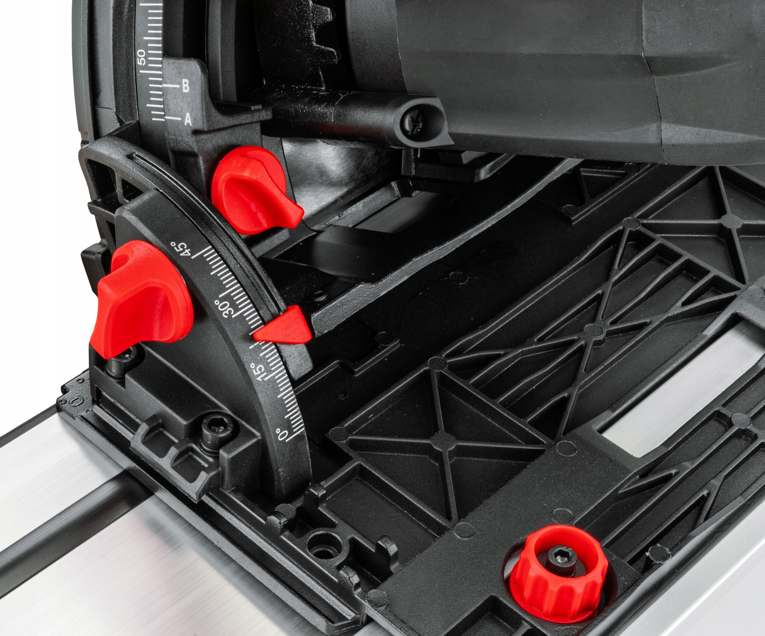 Aluminiowe szyny wyposażone są w listwy ślizgowe, elementy antypoślizgowe oraz gumowe zabezpieczenie antyodpryskowe na krawędzi, co zapewnia bezpieczne i precyzyjne cięcie.