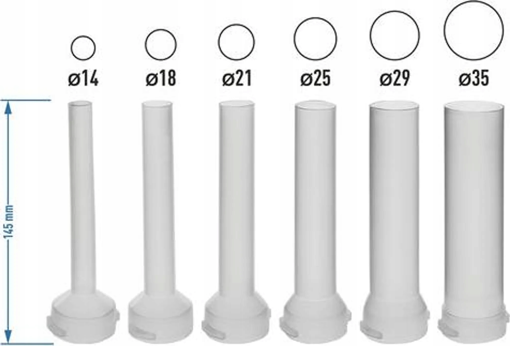 Średnica lejków na wylocie 14,18,21,25,29,35mm