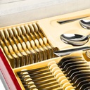 ➡️ 72 elementy dla 12 osób: Kompletny zestaw zawiera 72 elementy, dostosowane do potrzeb 12-osobowej zastawy, dzięki czemu stanowi pełne wyposażenie stołu. W skład zestawu wchodzą sztućce do każdego posiłku – noże, widelce, łyżki, łyżeczki oraz dodatkowe akcesoria, co sprawia, że jest idealny na duże spotkania, uroczystości rodzinne i wyjątkowe okazje. Dzięki tej różnorodności, zestaw Aria Premium spełni potrzeby każdego gościa, podkreślając smak serwowanych dań.