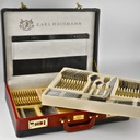 Набор столовых приборов Karl Hausmann ARIA PREMIUM-уникальный коллекция из 72 элегантных предметов, предназначенных для 12 человек, которые они подчеркнут каждый особый случай и придадут вашим блюдам особый блеск. Сделано из высококачественная нержавеющая сталь 18/0 и отделка в блестящем блеске, эти столовые приборы сочетают элегантность с практичностью. Включенные органайзеры вместе со стильным чемодан делает комплект не только функциональным, но и идеальным для подарок.