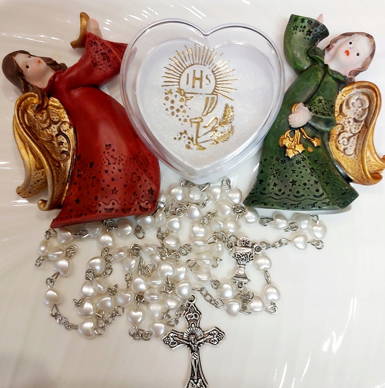 Pierwsza Komunia Święta to bardzo ważna uroczystość dla wszystkich wiernych, nie tylko dzieci które po raz pierwszy będą uczestniczyć w pełni Sakramentu Eucharystii. Nieodłącznym elementem tej pięknej chwili jest różaniec. Produkt, który Państwu proponujemy idealnie sprawdzi się jako pamiątka na lata, przypominająca o tym ważnym momencie w życiu. Medalik-łącznik przedstawia kielich mszalny z Hostią. Dostępny na naszej stronie różaniec pierwszokomunijny będzie wspaniałym prezentem, zwieńczającym tę podniosłą chwilę w życiu młodego katolika.