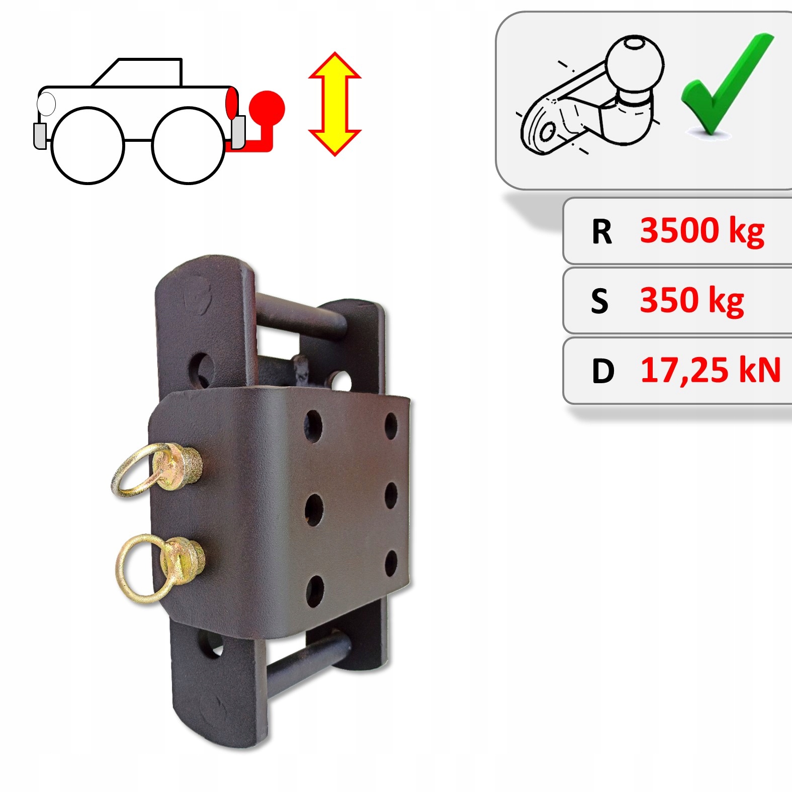 Aby zmienić wysokość kuli wystarczy wyjąć dwa sworznie, a następnie przesunąć blachę z przykręconą kulą w górę lub w dół i na końcu znowu zabezpieczyć za pomocą sworzni.