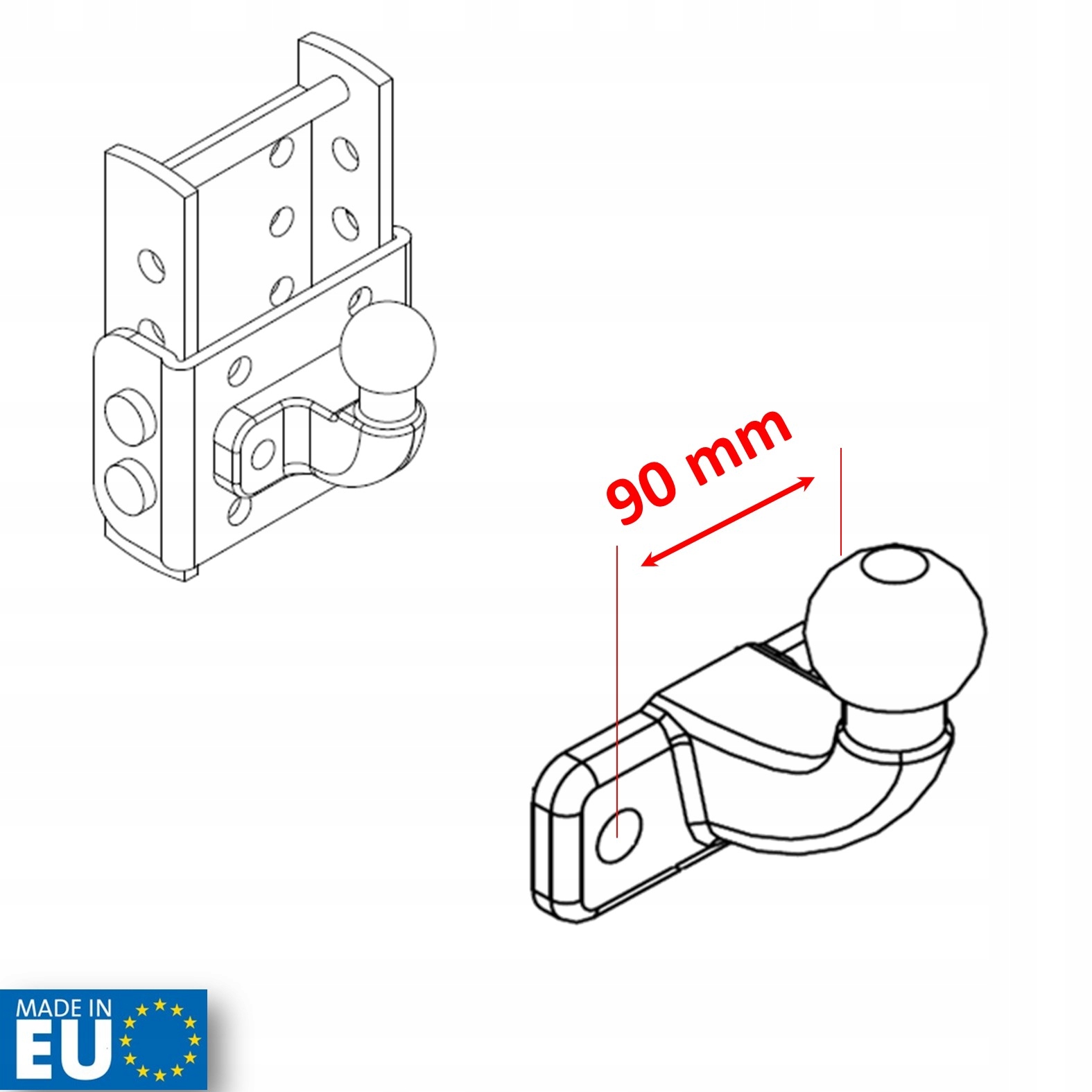 Adapter jest uniwersalny - pasuje do traktorów, maszyn rolniczych, pojazdów przemysłowych jak i osobowych. Do tego produktu pasuje każda kula flanszowa o rozstawie otworów 90 mm.