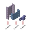 Wysokość płyty, do której przykręca się kulę można regulować co 45 mm za pomocą specjalnych sworzni, bez konieczności odkręcania śrub.