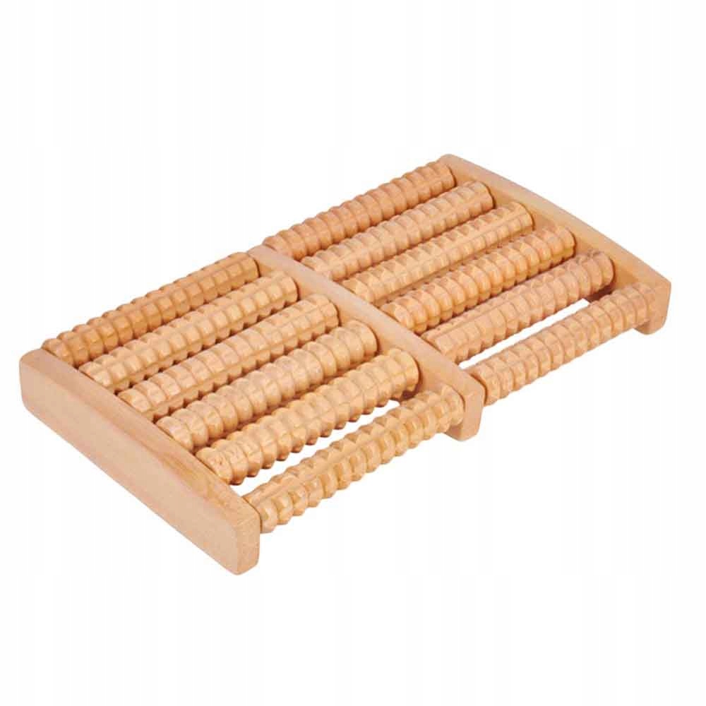 Drewniany, tradycyjny masażer do stóp typu roller delikatnie masuje całe stopy, poprawiając krążenie i oraz przemianą materii. Ruchome rolki delikatnie masują całe stopy, dzięki czemu wprowadzają w stan relaksu i odprężenia. Produkt przeznaczony jest głównie do masażu stóp. Używając masażera wpływamy na rozszerzenie naczyń krwionośnych, przemianę materii, sprawność fizyczną i umysłową.