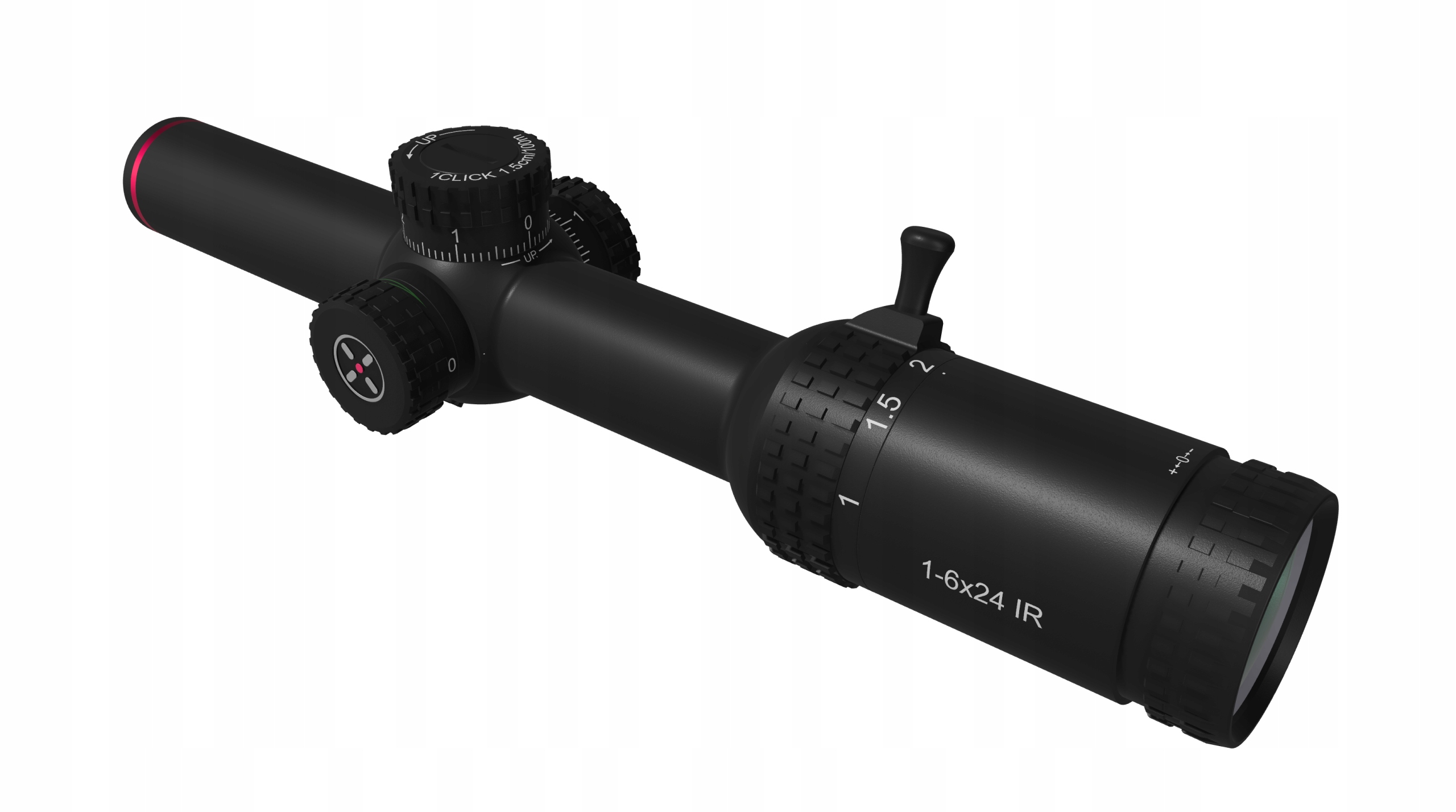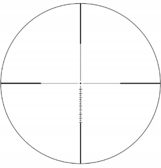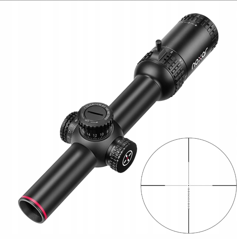 Precyzyjny krzyż celowniczy. Zastosowany krzyż nie zasłania celu, posiada delikatną kropeczkę podświetlenia pomiędzy belkami a przede wszystkim, dzięki specjalnym podziałkom, ułatwia nanoszenie korekt przy strzelaniu na dalszych dystansach. Brak efektu tuby. Dzięki wysokiej jakości optyce, przy nastawie 1x nie zachodzi zjawisko tzw efektu tuby, dzięki czemu mamy dostęp do pełnej skali obrazu już od najmniejszego powiększenia, co sprawia że luneta będzie uniwersalnym towarzyszem łowów, także na polowaniach zbiorowych.