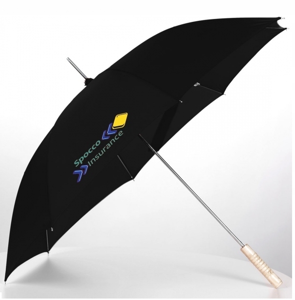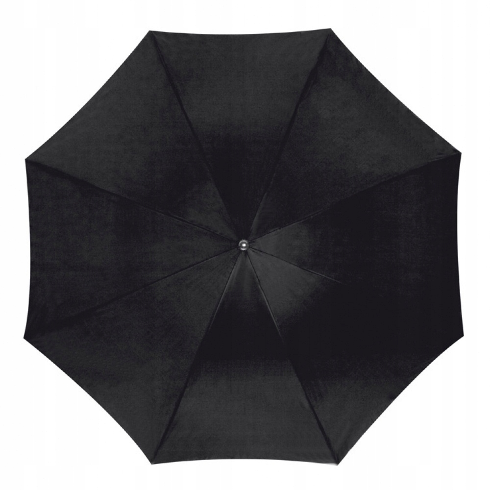 Automatyczny parasol z poliestru 170T, z prostą drewnianą rączką i metalowymi końcówkami.