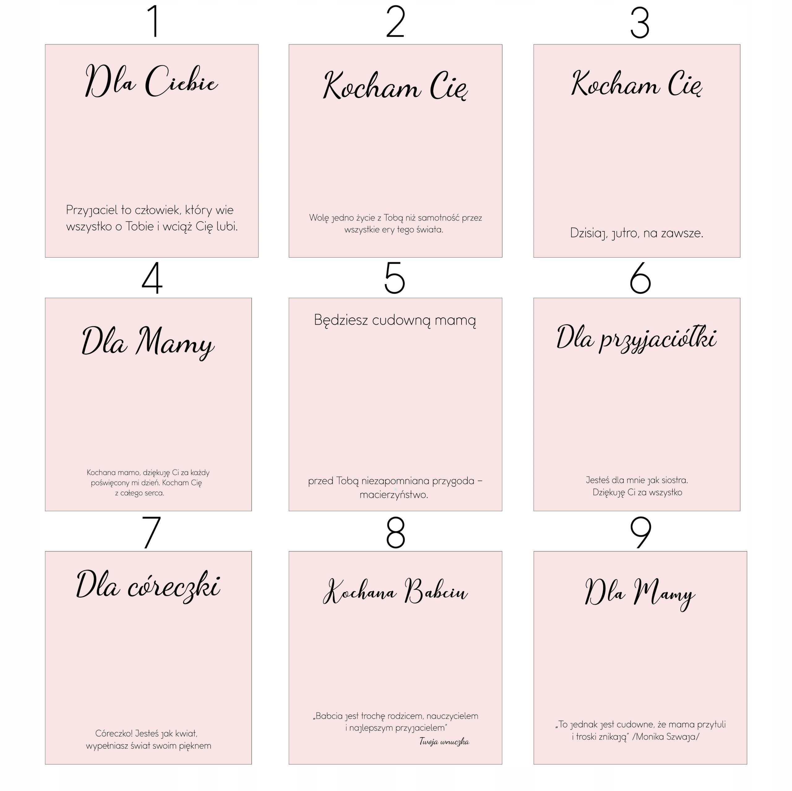 Każdy produkt umieszczamy indywidualnie na spersonalizowany, ozdobny kartonik z dedykacją. W komentarzu do zamówienia wpisz numer wybranej kartki prezentowej z naszej galerii, a my zapakujemy na nią Twój zakupiony produkt.