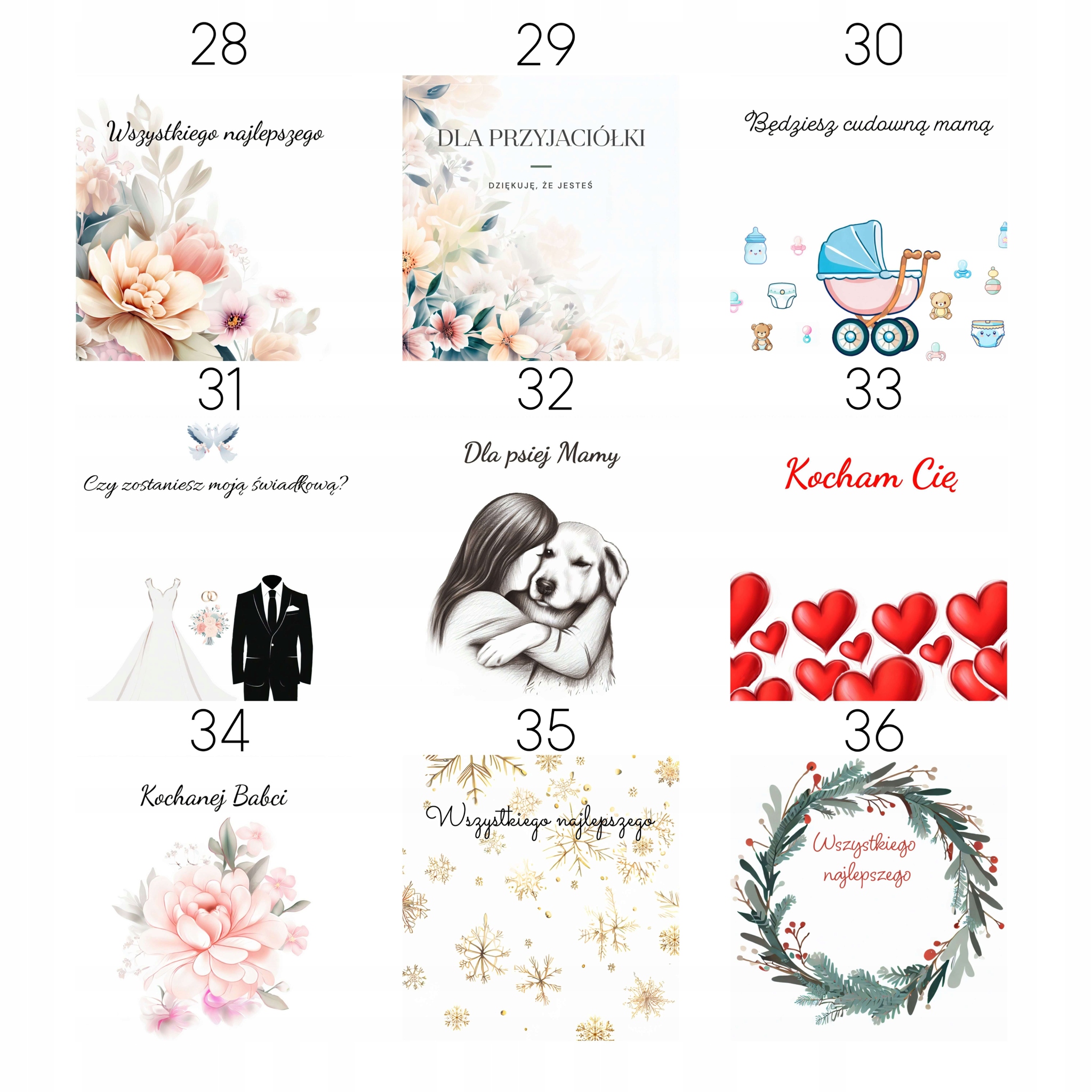 W komentarzu do zamówienia podaj numer kartki prezentowej z galerii, a my bezpłatnie zapakujemy na nią zakupiony produkt♡