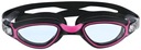 Ich lekko zakrzywione soczewki zapewniają szerokie pole widzenia, co umożliwia swobodne obserwowanie otoczenia podczas treningów. Wykonana z miękkiego silikonu uszczelka gwarantuje komfort noszenia oraz pewną szczelność, co dodatkowo podnosi atrakcyjność produktu. Regulowany, rozdwojony w środkowej części pasek z precyzyjnymi regulatorami pozwala na szybkie i łatwe dopasowanie do kształtu głowy, zapewniając tym samym stabilność okularów podczas pływania.