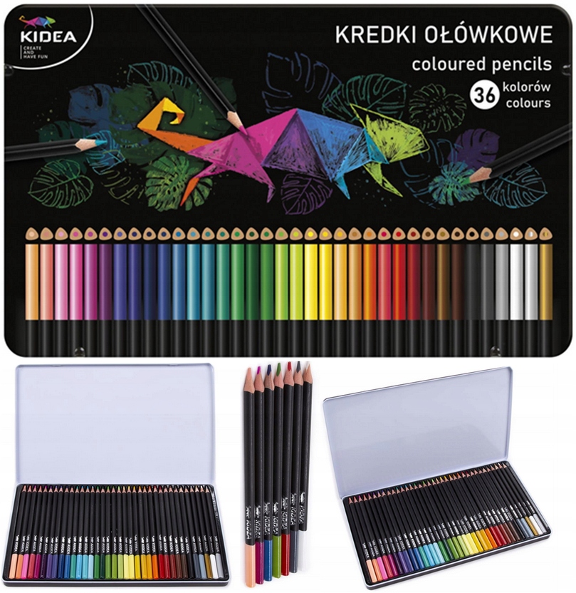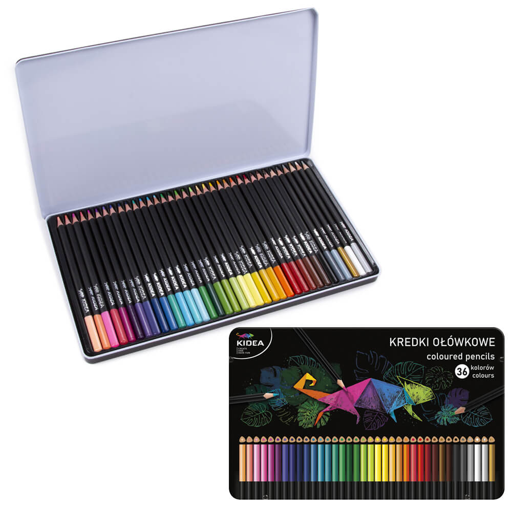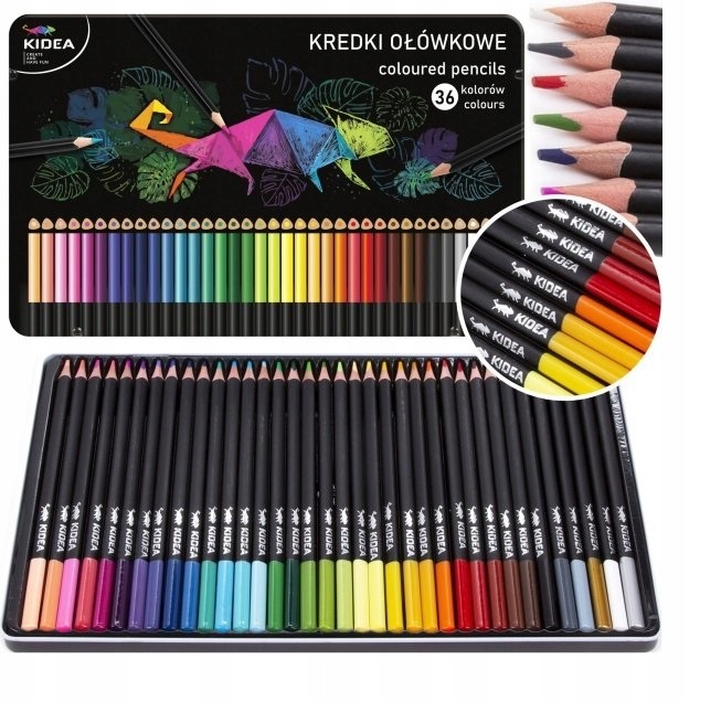 ТРЕУГОЛЬНЫЕ ЦВЕТНЫЕ КАРАНДАШИ В МЕТАЛЛИЧЕСКОЙ КОРОБКЕ 36 ЦВЕТОВ KIDEA