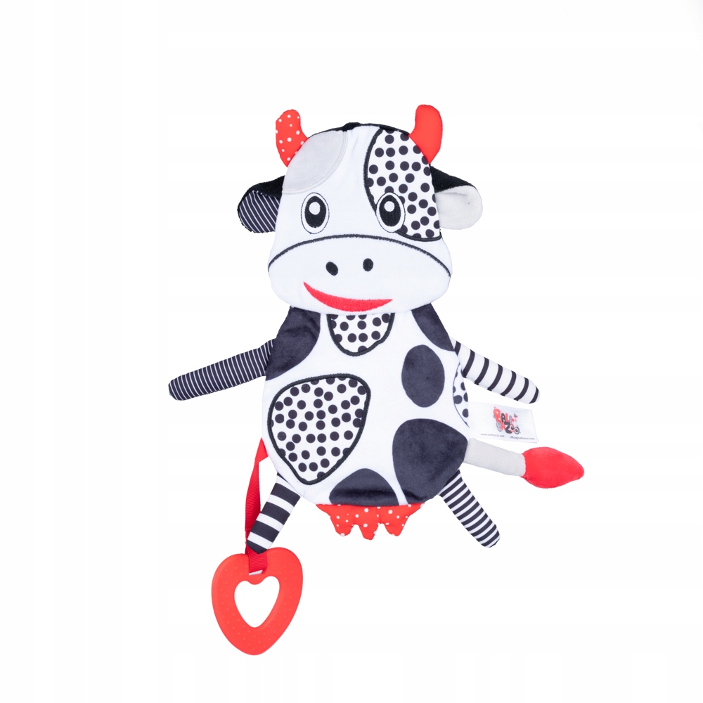 Ta urocza krówka posiada wyjątkowe zdolności. Wesoło szeleści podczas przytulania, a do tego rozwija umiejętności poznawcze malucha, za sprawą zróżnicowanych faktur materiałów, z których została wykonana. Jej kontrastowe kolory stymulują zmysł wzroku bobasa. Przy nóżce zwierzaka znajduje się miękki gryzak z wypustkami, które podczas gryzienia, masują obolałe dziąsła ząbkującego malucha.
