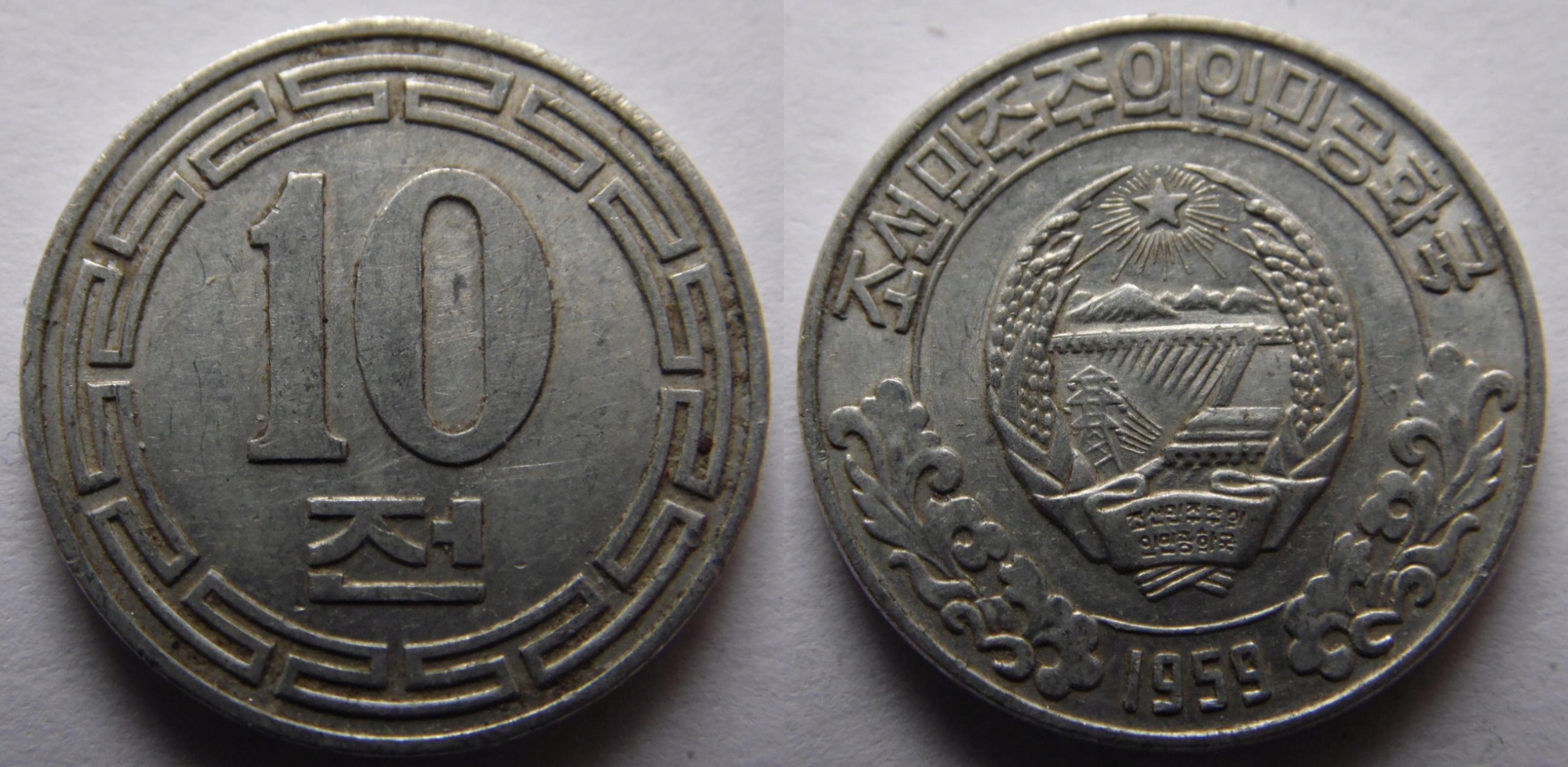 Korea Północna 10 czon 1959, średnica: 19 mm
