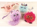 W zestawie znajdują się pompony, sznurki i ozdoby, które pozwolą na stworzenie 4 kolorowych breloczków według własnego projektu.
