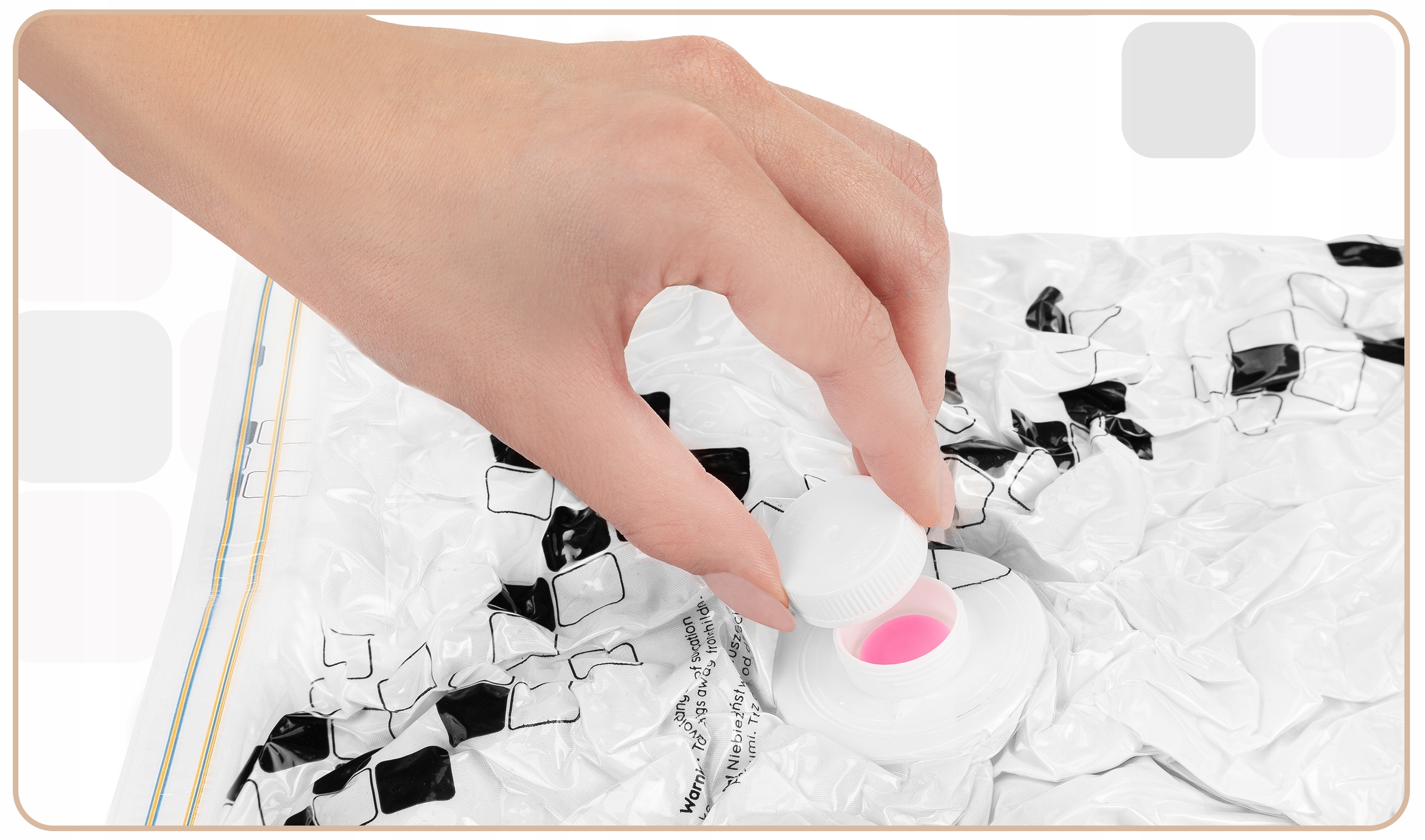 ✅ Przy pakowaniu zawartości zwróć uwagę, aby nie przechowywać rzeczy z dżetami, czy ostrymi aplikacjami, aby nie uszkodziły folii. Dodatkowo nie rekomendujemy przechowywania rzeczy z puchu lub pierza.