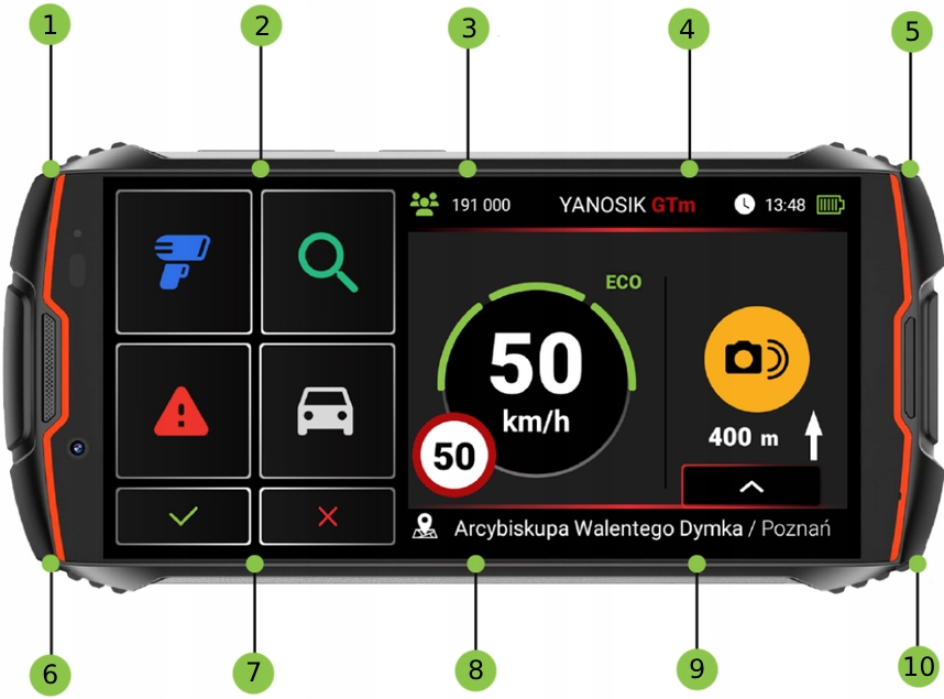 Yanosik GTm obsługujesz dotykowo, dzięki czemu interakcja z urządzeniem jest znacznie płynniejsza. Możesz dodawać swoje zgłoszenia łatwo i przyjemnie przez panel dotykowy.
