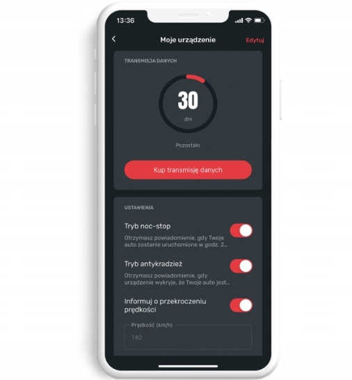 Po tym okresie do prawidłowego działania urządzenia niezbędny jest zakup kolejnego pakietu transmisji danych w dedykowanej aplikacji Y24 lub na stronie producenta. Dostępne okresy abonamentu to 12 lub 24 miesiące.