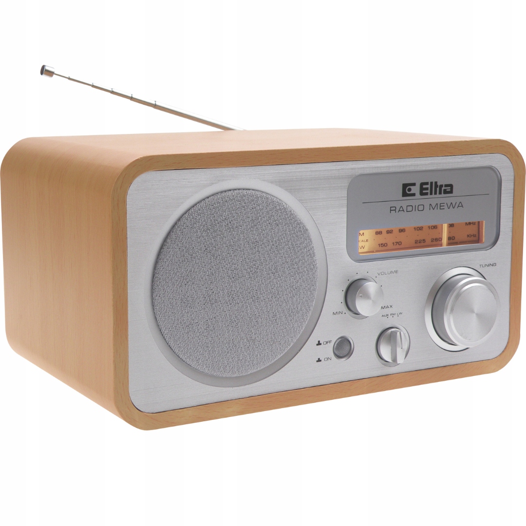Radio ELTRA Mewa 3388 to doskonały wybór dla miłośników klasycznego wyglądu i funkcjonalności. Wyposażone w elegancką, drewnianą obudowę w kolorze buku z srebrnym frontem, stanowi elegancki dodatek do każdego wnętrza. Analogowa, wskazówkowa skala z bursztynowym podświetleniem nie tylko ułatwia precyzyjne dostrojenie, ale także dodaje urządzeniu retro charakteru.