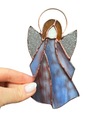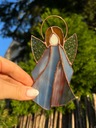 Uroczy aniołek witrażowy wykonany metodą Tiffany ze szkła witrażowego.
