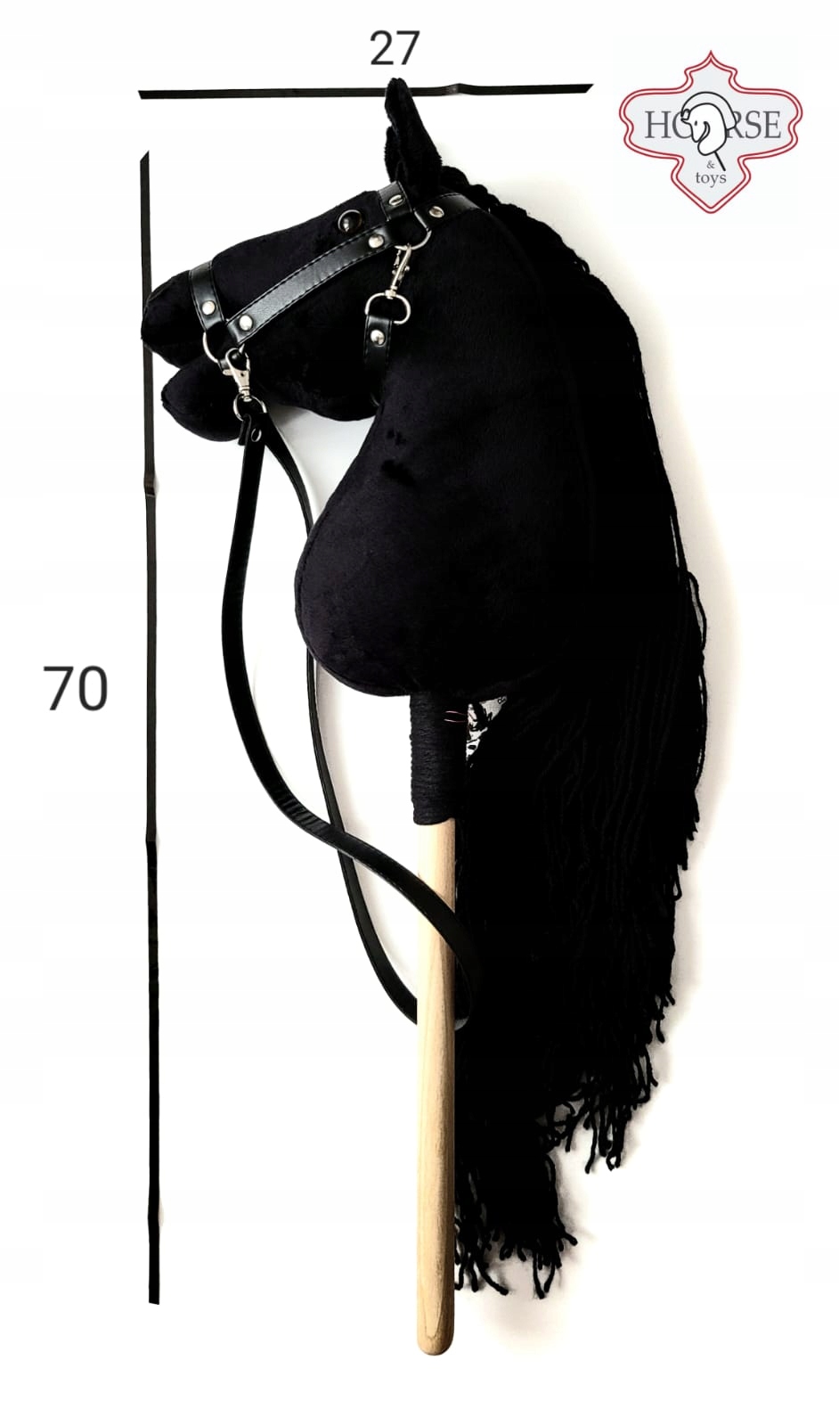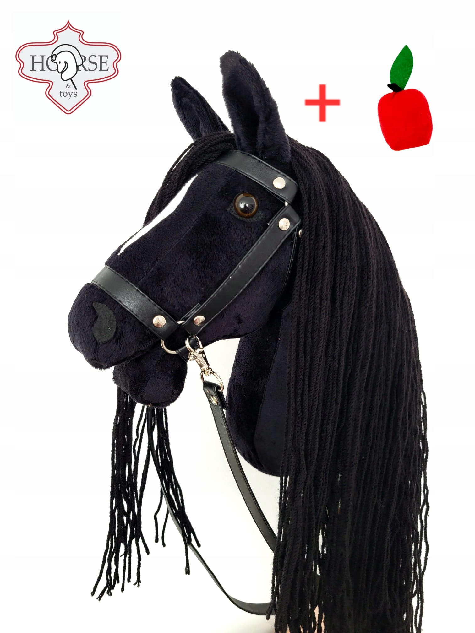 Zestaw Hobby Horse Ikar Duży (Koń na patyku) + ogłowie czarne + wodze by Horse&Toys + jabłko gratis, aby dziecko miało wszystko do zabawy z koniem