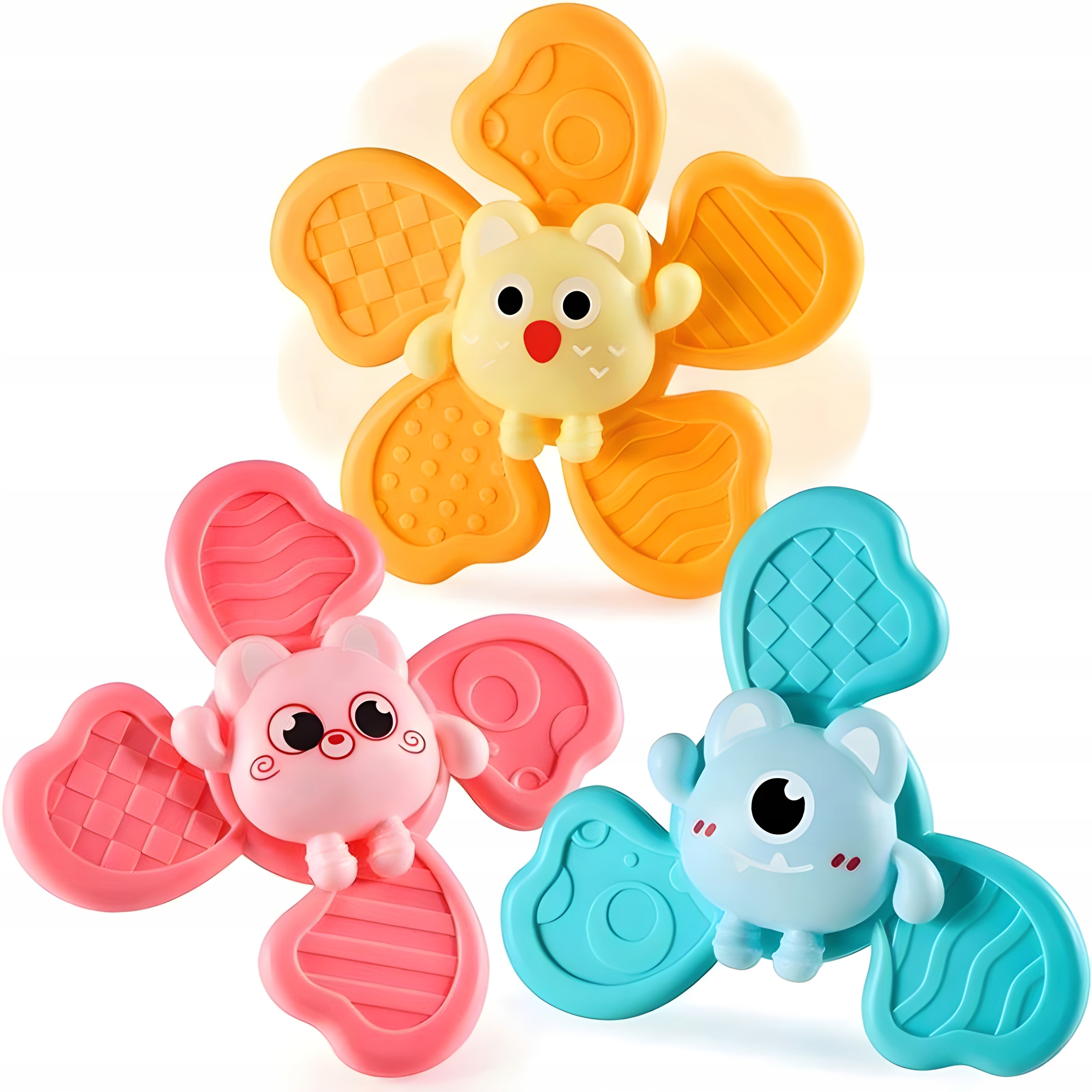 ✔️ Fantastyczny zestaw 3 wirujących zabawek typu spinner z grzechotką sprawią nie lada zainteresowanie. Te kolorowe zabawki mogą pełnić kilka funkcji jednocześnie. Dodatkowo można je zamocować do dowolnej gładkiej powierzchni, np do krzesełka do karmienia, do szyby czy do wanny podczas kąpieli.