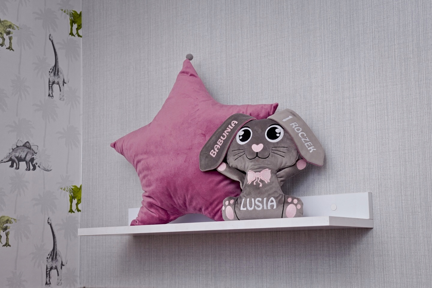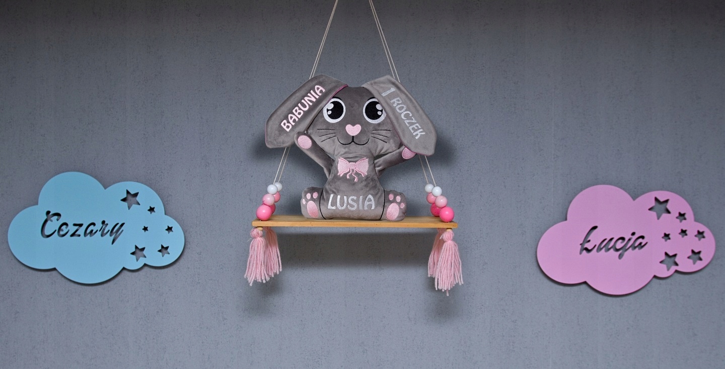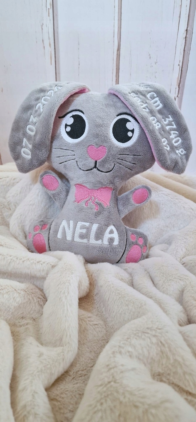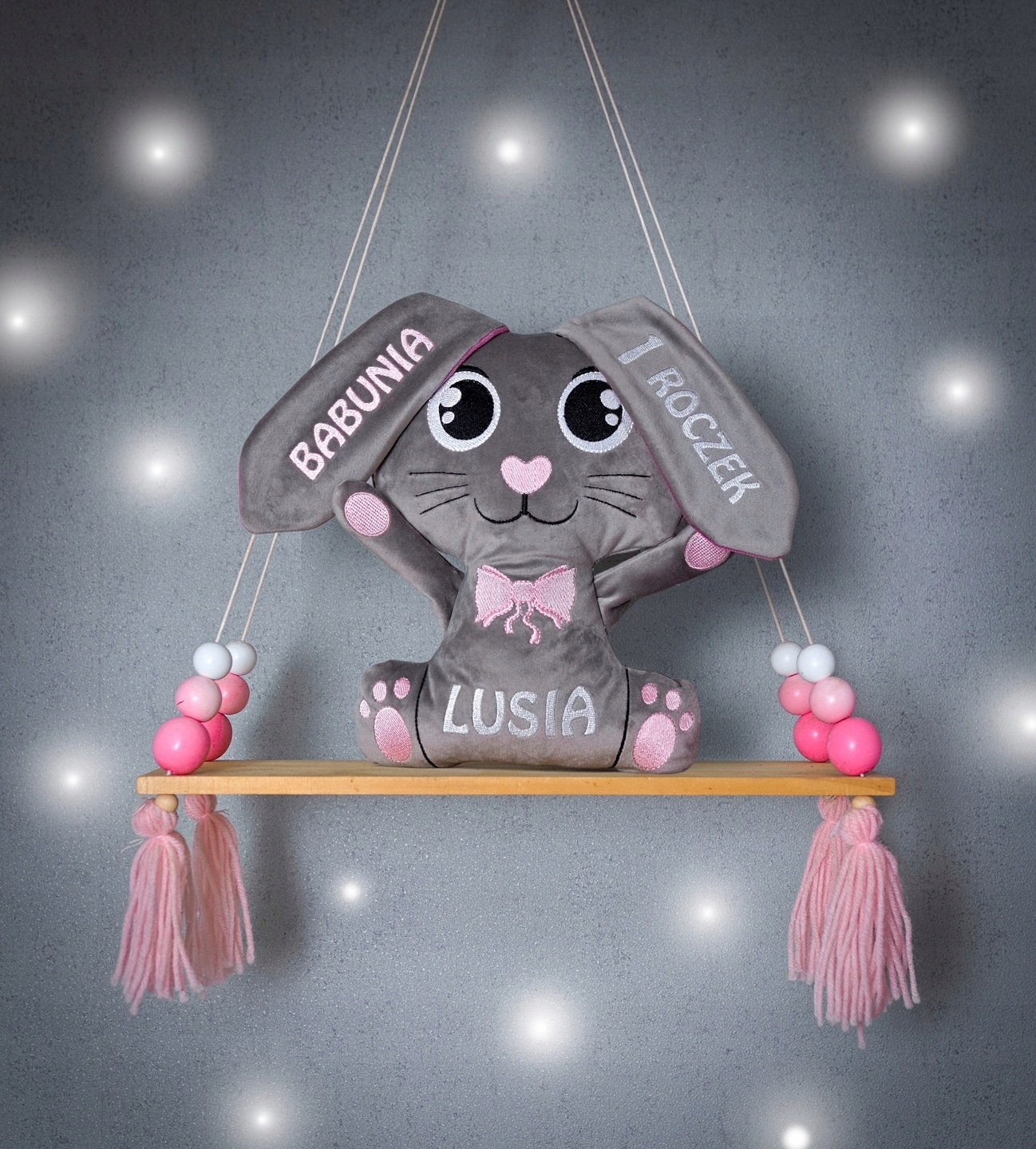 Nasz spersonalizowany króliczek będzie niezapomnianą pamiątką i oryginalnym prezentem na narodziny dziecka, roczek, chrzciny, lub inne okazje.