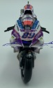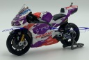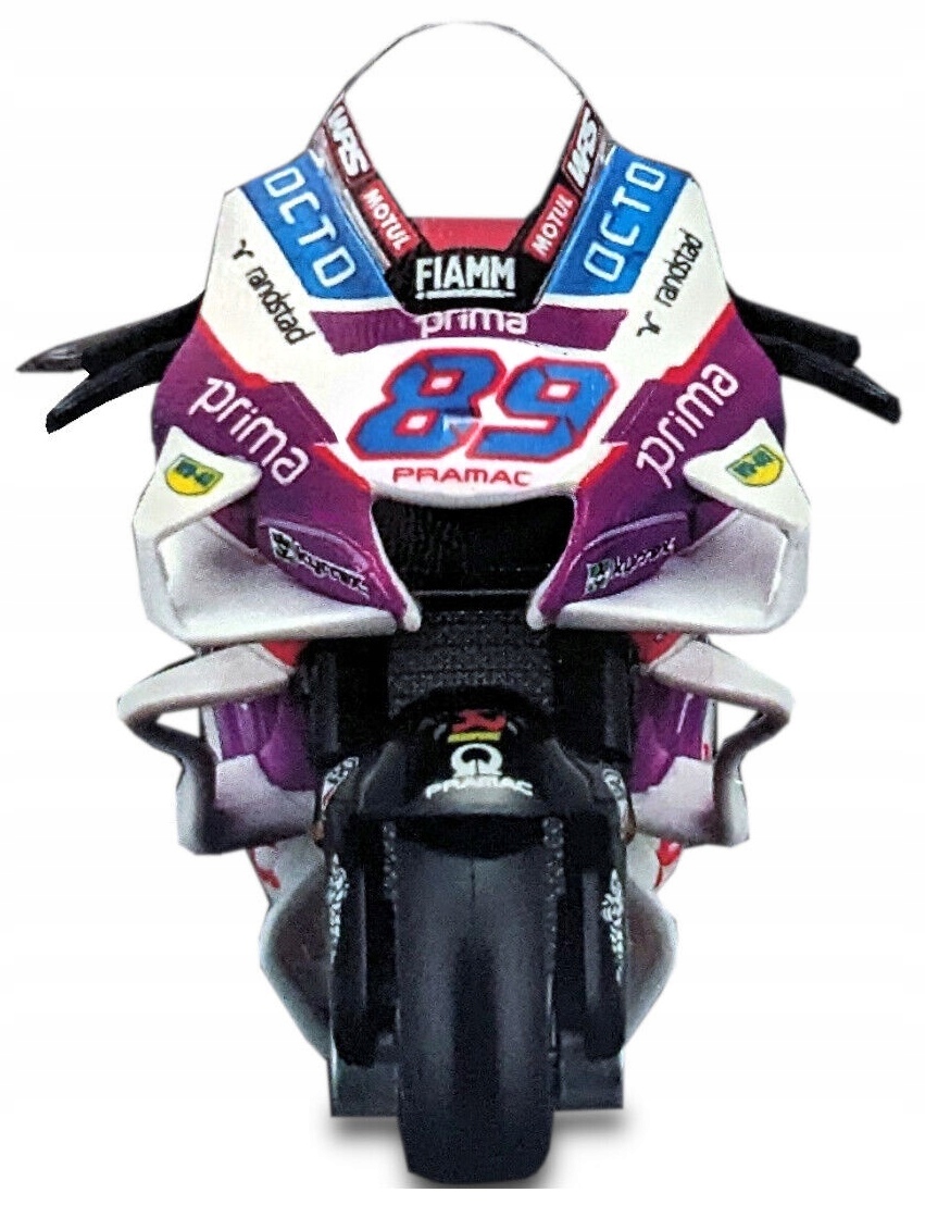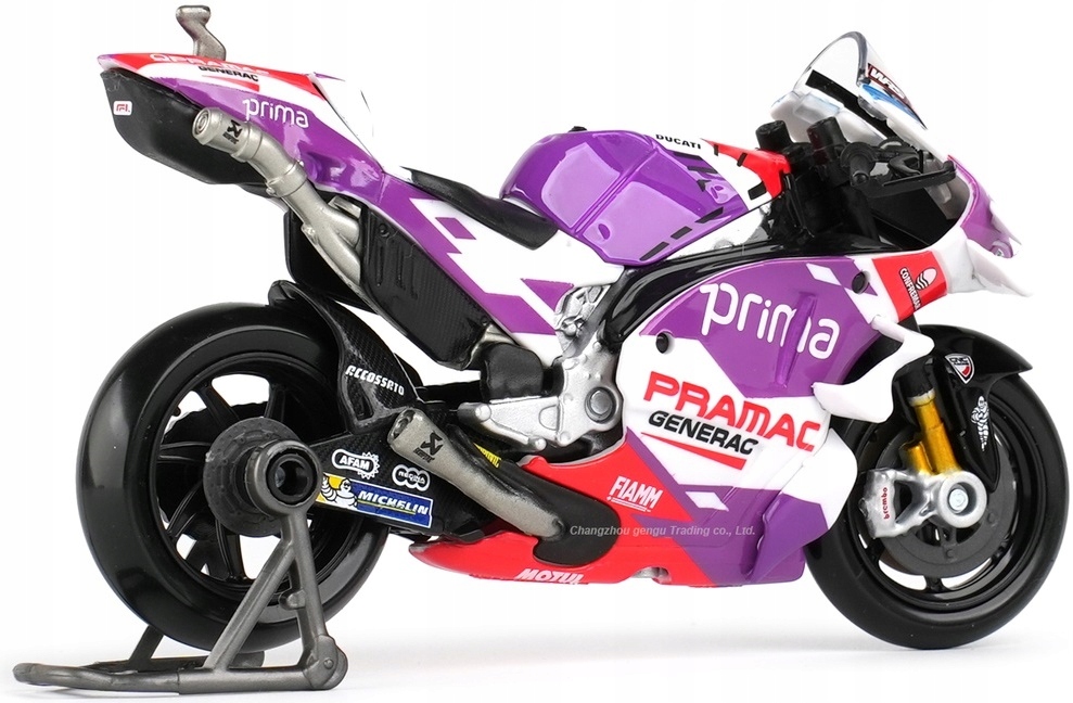 Model motocykla charakteryzuje się dbałością o szczegóły. Posiada ruchome elementy, idealny dla miłośnika marki, kolekcjonera lub po prostu jako zabawka dla dziecka. Posiada stojak, dzięki czemu po zdjęciu z podstawki wspaniale prezentuje się na biurku lub półce kolekcjonera. Ruchome koła, kierownica oraz tylny wahacz. Zbiornik paliwa metalowy.