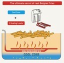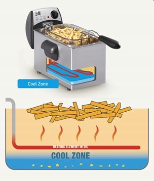 Dzięki szybszemu nagrzewaniu frytki nie są tłuste. Ponadto pozostałości opadają w chłodnej strefie i nie palą się. Nie ma już przypalonych pozostałości na świeżych frytkach.