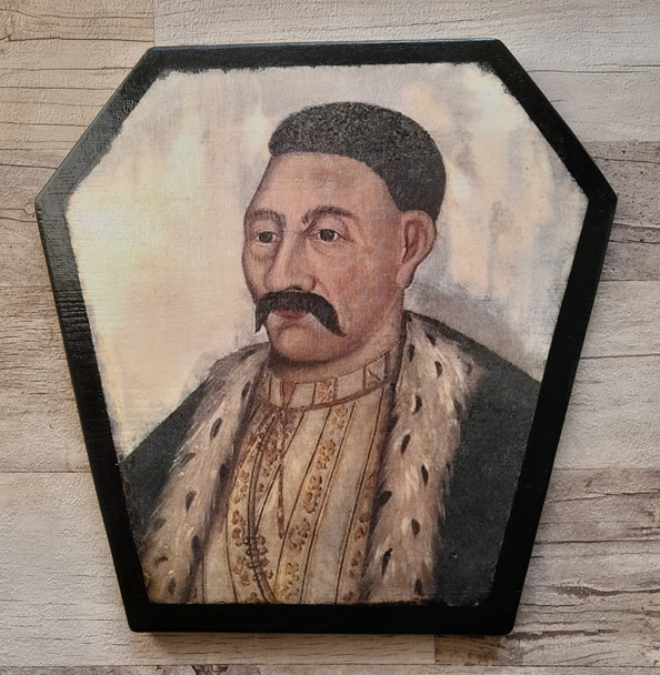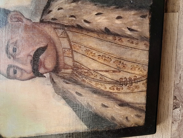Reprodukcja portretu trumiennego szlachcica . Reprodukcja portretu wykonana jest współcześnie, na desce o grubości ok. 2 cm., lakierowana, przygotowana do powieszenia na ścianie. Nie jest to olej , ale jest wykonana taką techniką ,która daje efekt starego obrazu olejnego. Wymiary: 29 cm x 29 cm. Zapraszam na inne moje aukcje, gdzie są portrety trumienne i ikony.