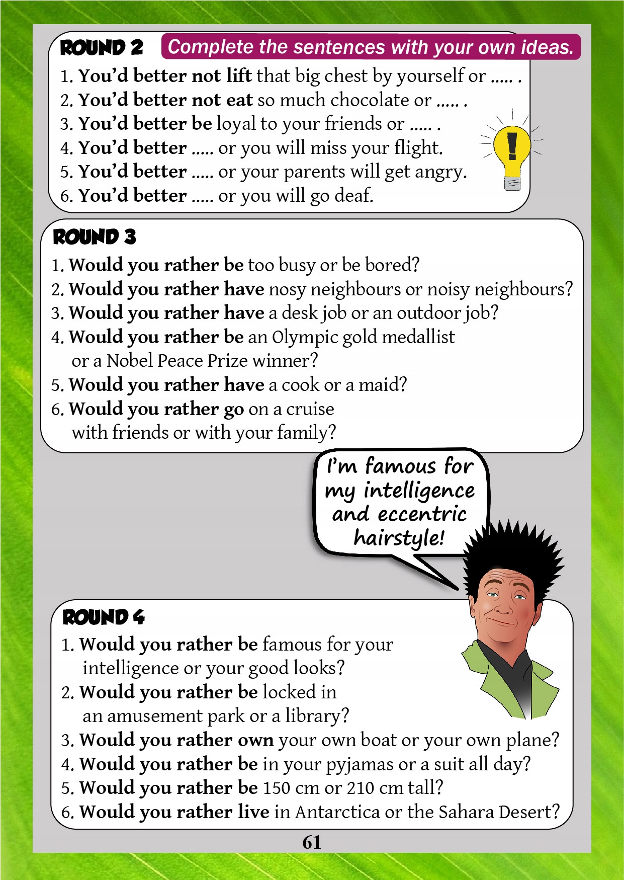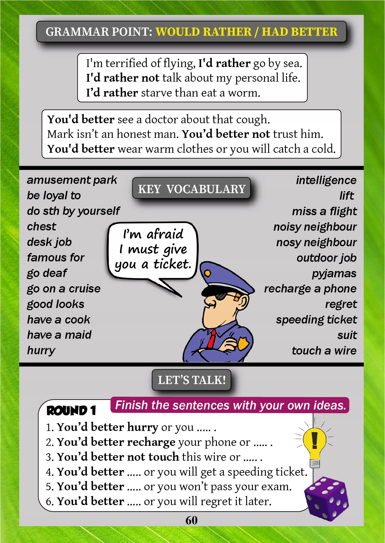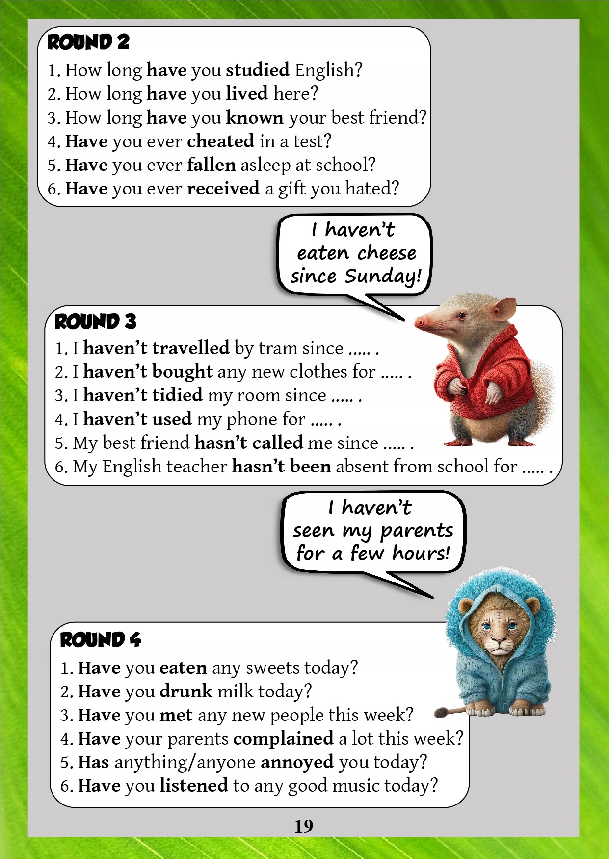 Let’s Talk, Play, and Learn Grammar to niezrównana pozycja, która skupia się na rozwijaniu umiejętności konwersacyjnych poprzez praktyczne zastosowanie gramatyki. Książka ta została stworzona z myślą o uczniach pragnących dokonać szybkich postępów w mówieniu, wyeliminować popełniane błędy oraz poszerzyć swoje słownictwo. Dodatkowo, oferuje ona także element rywalizacji podczas zajęć, wystarczy jedynie zwykła kostka do gry. Dzięki możliwości organizacji przyjaznych zawodów, uczniowie będą zaangażowani i aktywnie uczestniczyć w procesie nauki.