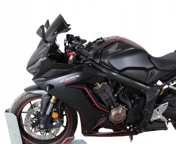 Model CBR650R z 2019 roku nazywany jest również "młodszą siostrą" Fireblade. Wyścigowa szyba przednia MRA (R) pasuje do sportowej pozycji siedzącej jak ulał! Przy całkowitej długości 36,5 cm ma kształt kasku i zachęca do sportowej jazdy. Dostępny w wersji przezroczystej, przydymionej szarej i czarnej.