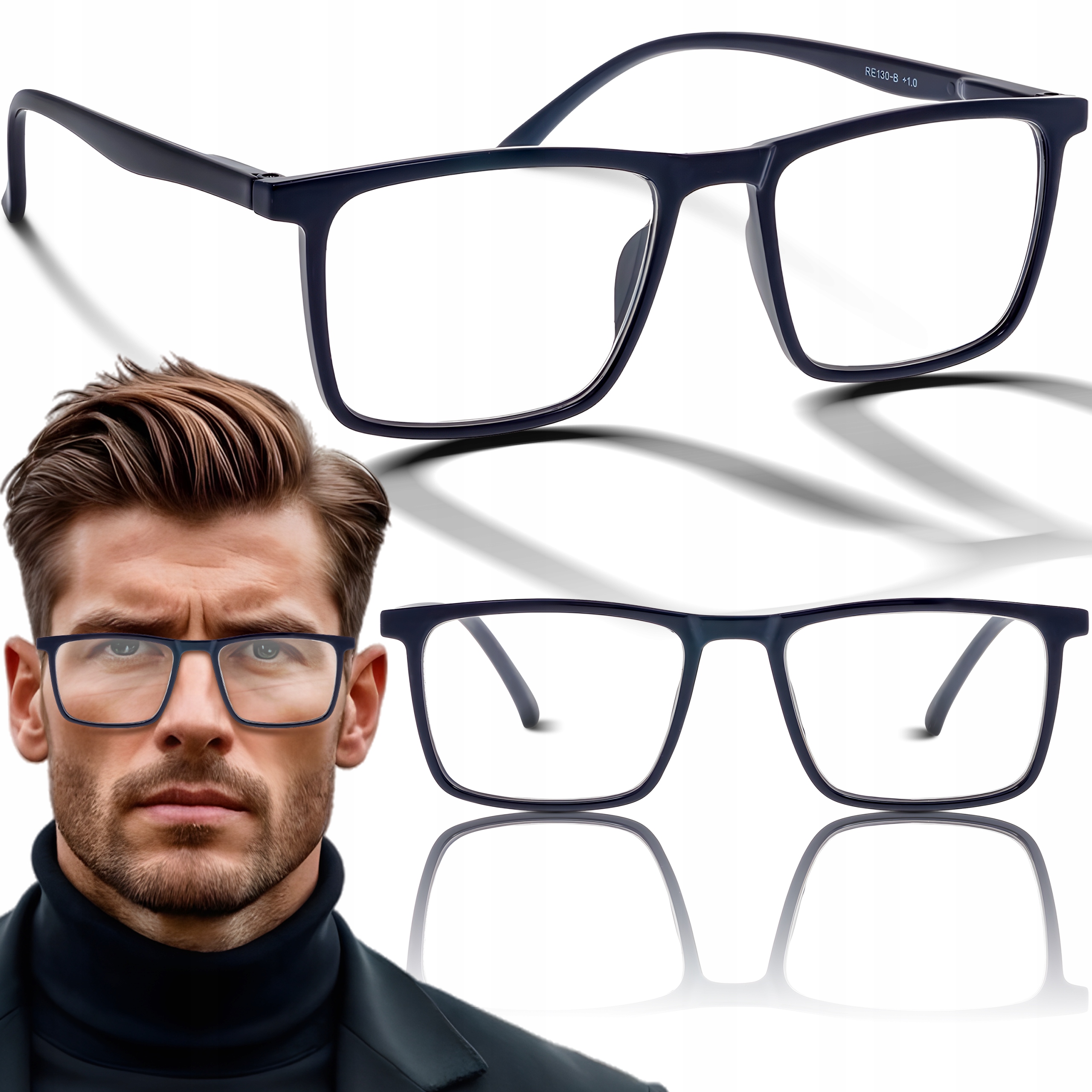 Męskie okulary do czytania w prostokątnym kształcie w eleganckim granatowym kolorze łączą nowoczesny design z klasyczną funkcjonalnością.