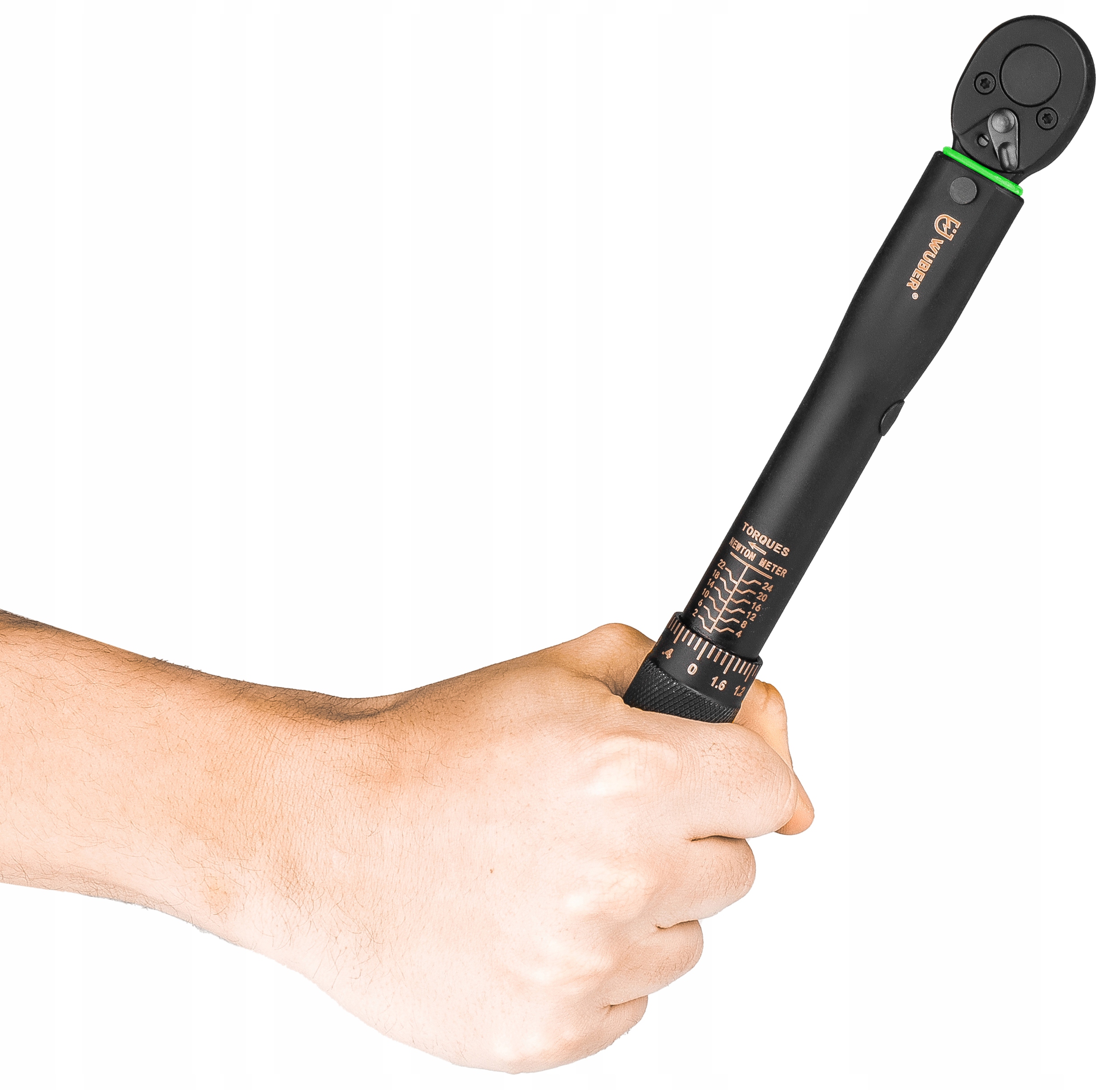 ✔️ Zakres pomiaru wynoszący od 2 do 24 Nm umożliwia dopasowanie siły dokręcenia do indywidualnych potrzeb. Długość klucza wynosząca 265 mm ułatwia pracę w trudno dostępnych miejscach