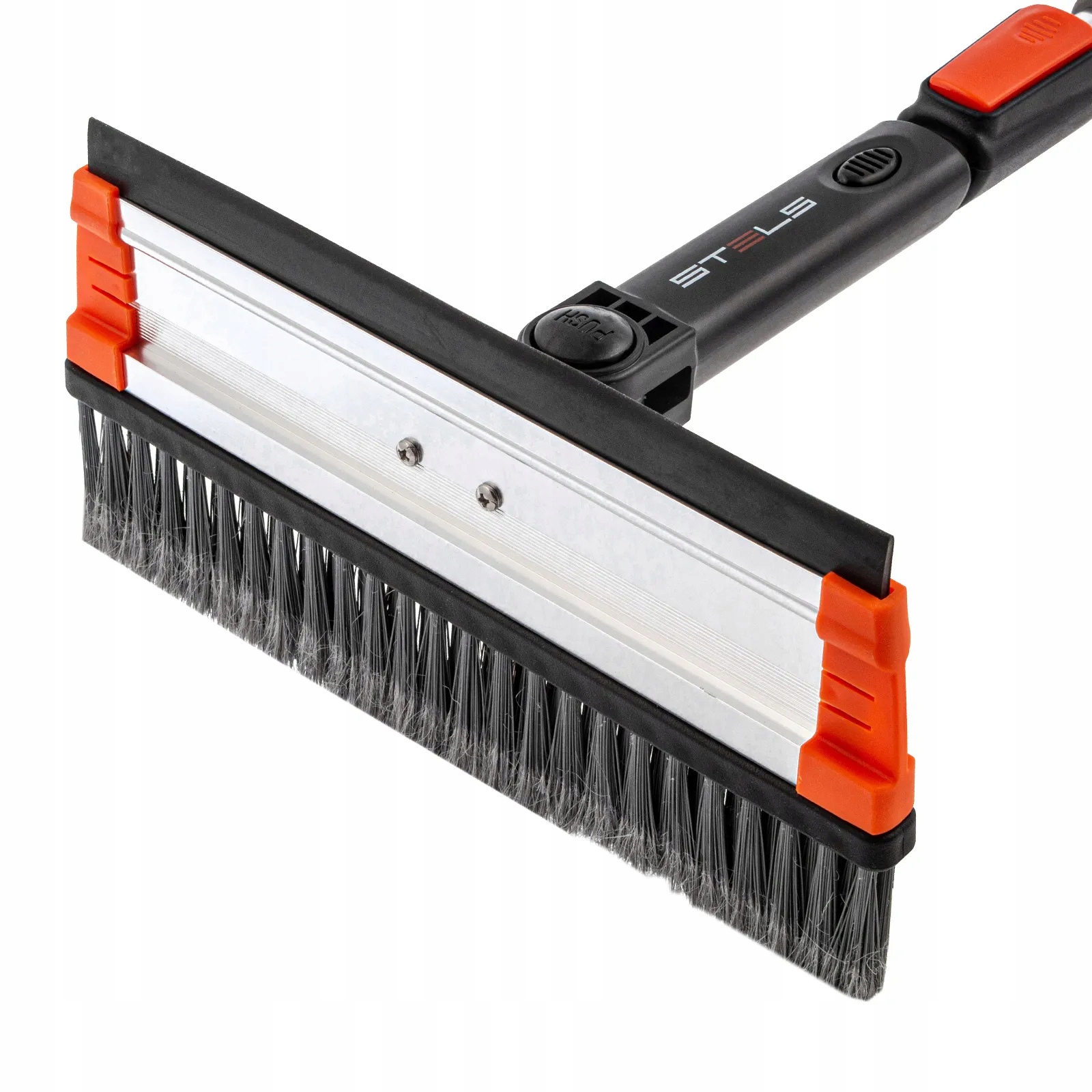Produkt jest wyposażony w gęste włosie, które skutecznie usuwa zalegający śnieg, oraz gumową ściągaczkę do wody, która znajduje się z tyłu szczotki, zapewniając szybkie i bezpieczne czyszczenie powierzchni. Skrobaczka o szerokości 93 mm z dodatkowymi zębami ułatwia kruszenie lodu, co przydaje się w mroźne dni.
