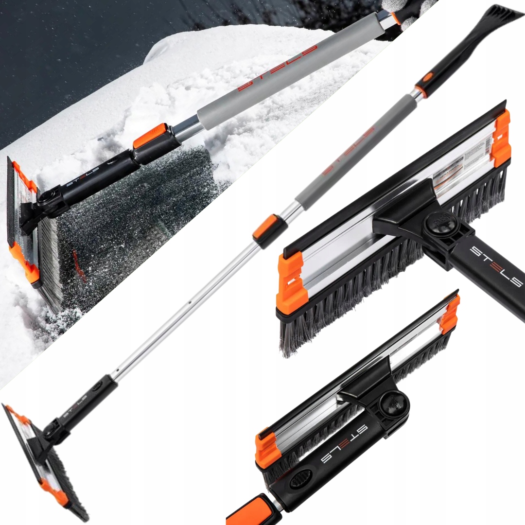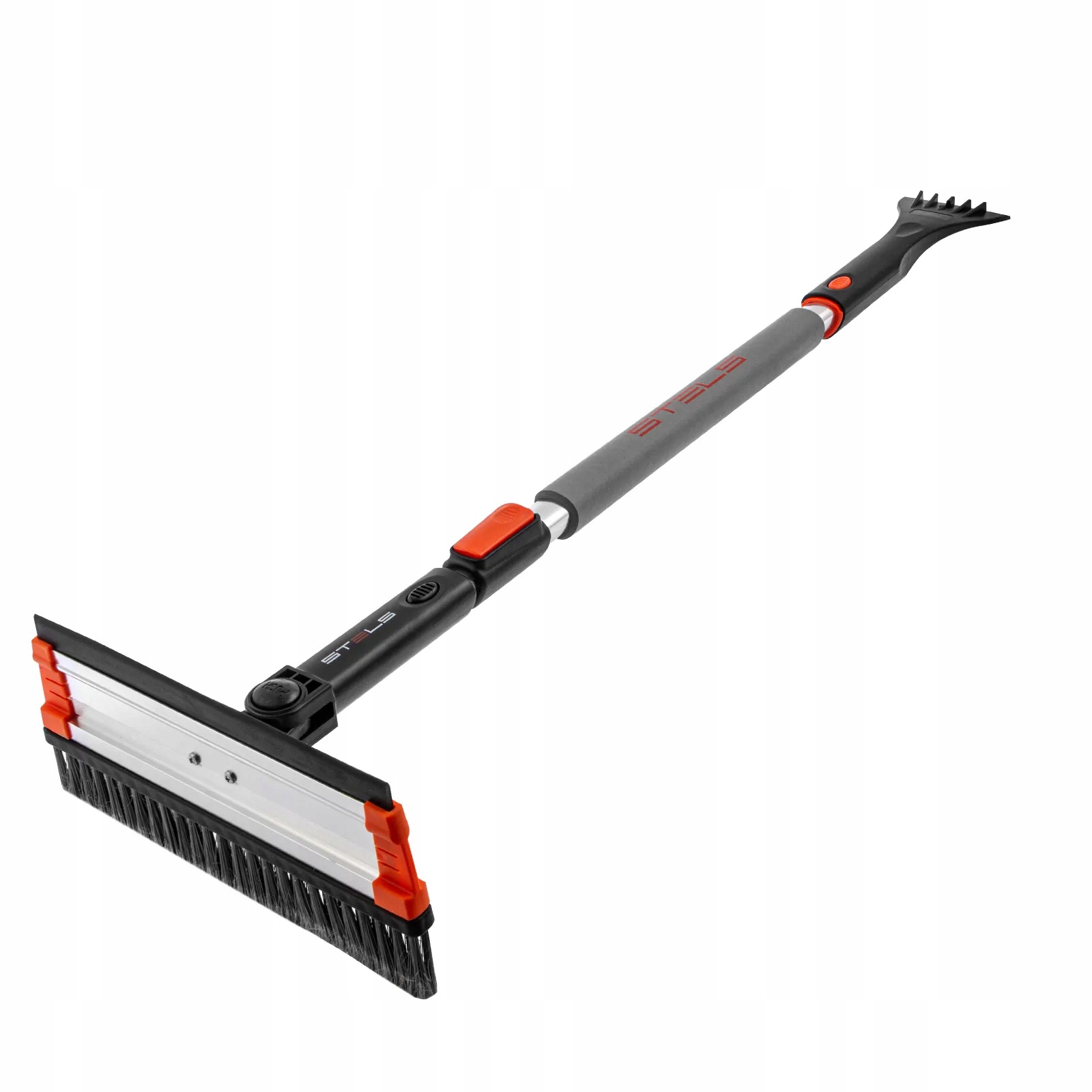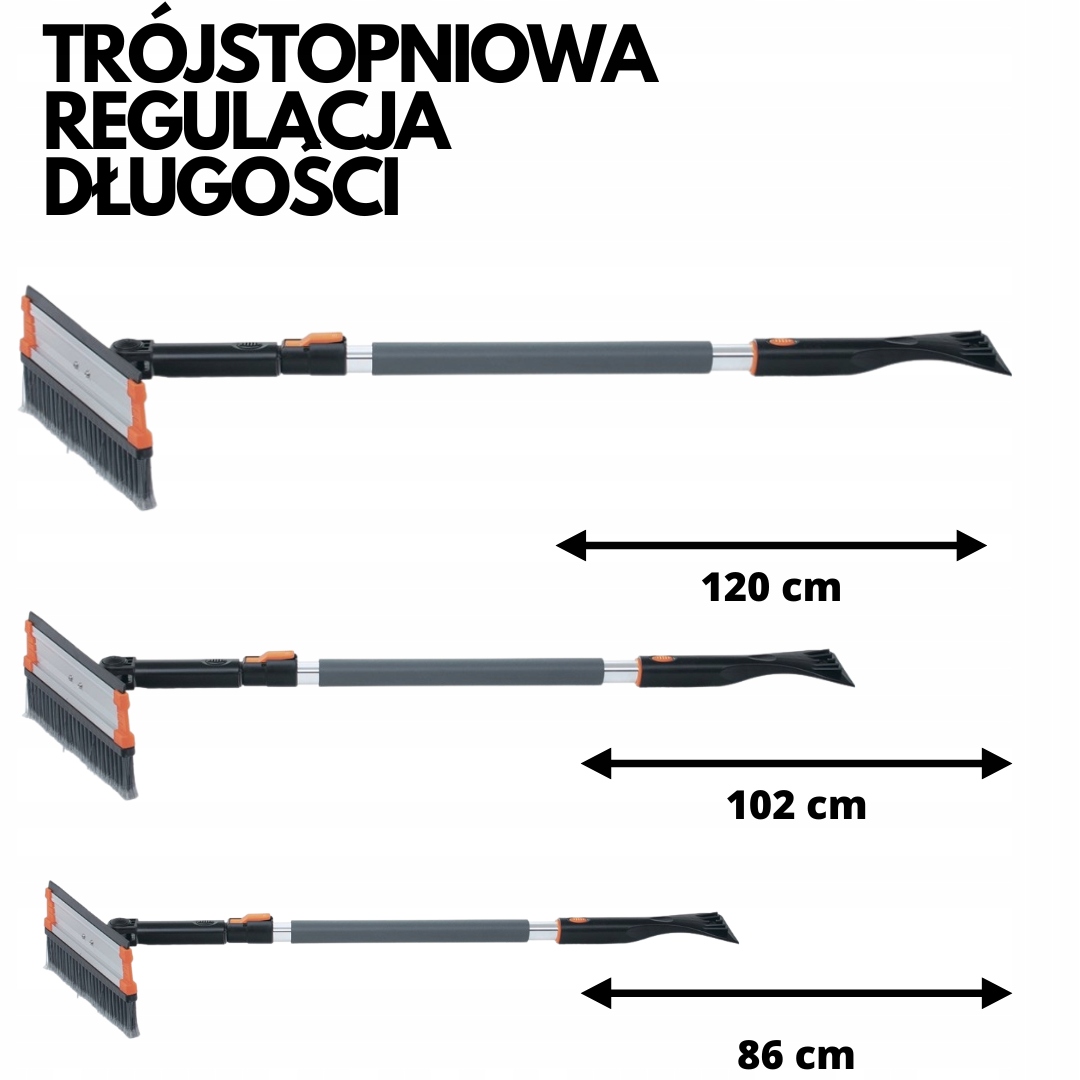 Teleskopowa szczotka-skrobaczka to wielofunkcyjne narzędzie do skutecznego odśnieżania i oczyszczania szyb samochodowych. Dzięki trzystopniowej regulacji długości (86 cm, 102 cm oraz 120 cm) oraz pięciopunktowej regulacji kąta ustawienia głowicy, szczotka umożliwia dopasowanie do indywidualnych potrzeb użytkownika.
