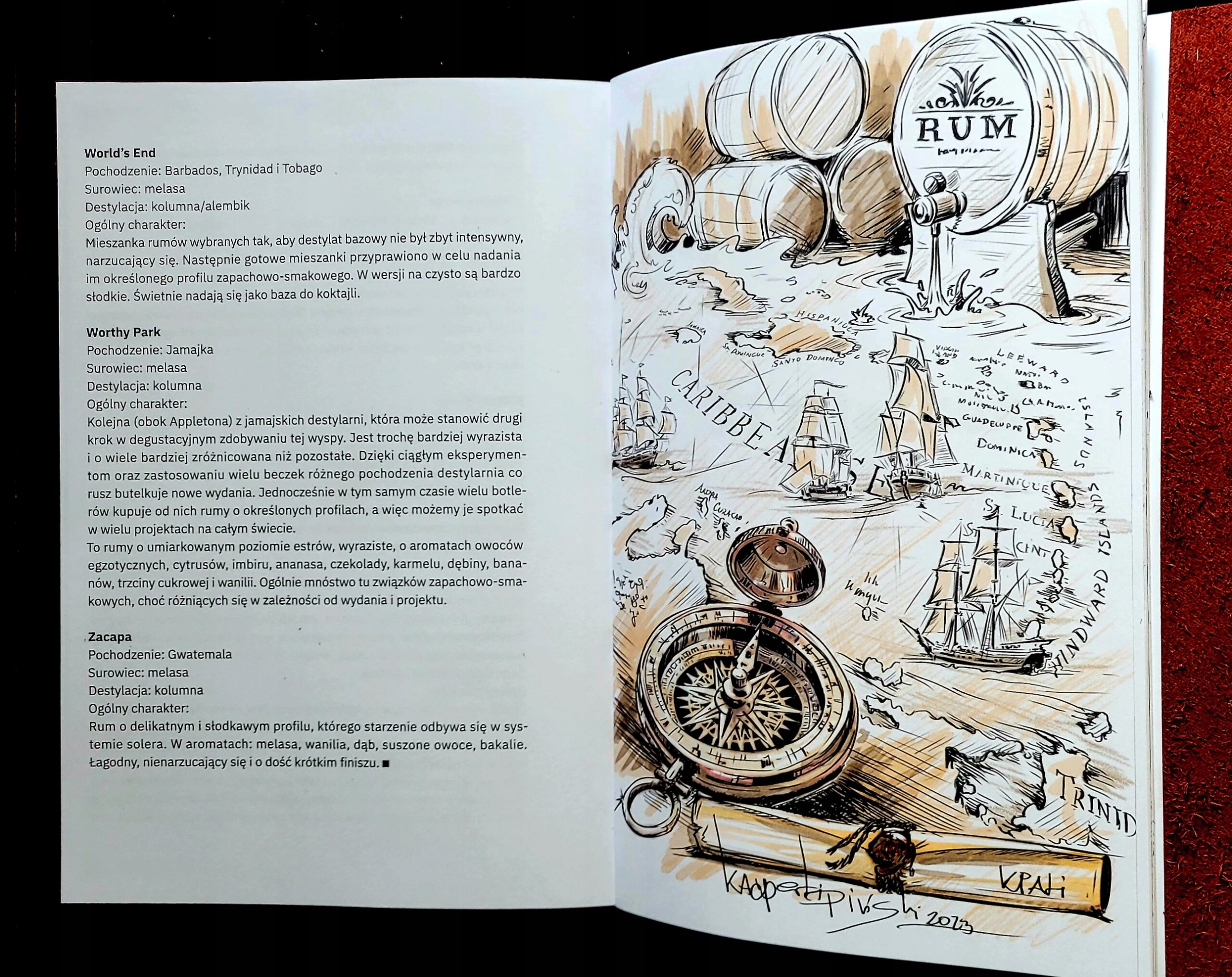 „Rum Compendium” to pierwszy w Polsce, pełny zasób wiedzy na temat rumu, zawierający esencję tematu, podany w przystępny i atrakcyjny wydawniczo sposób. Jest podsumowaniem 13 lat doświadczeń i wiedzy autora zdobytej w podróżowaniu po destylarniach rumu na całym świecie oraz aktywnym procesie zgłębiania wiedzy o rumie u najlepszych i cenionych autorytetów tego tematu. Atrakcyjna forma, zbliżona do dziennika z podróży nadaje książce osobistych wątków, w które autor wplata wątki techniczne i historyczne co sprawia, że lekturze tej bliżej do pasjonującej powieści niż naukowo podanych, suchych faktów. To doskonały przewodnik po świecie rumów zarówno dla osób początkujących jak i doświadczonych koneserów. Uwaga książka oprawiona w naturalną skórę; każdy egzemplarz będzie posiadać indywidualne cechy; egzemplarze mogą różnić się wynika to z naturalnego charakteru oprawy skórą.