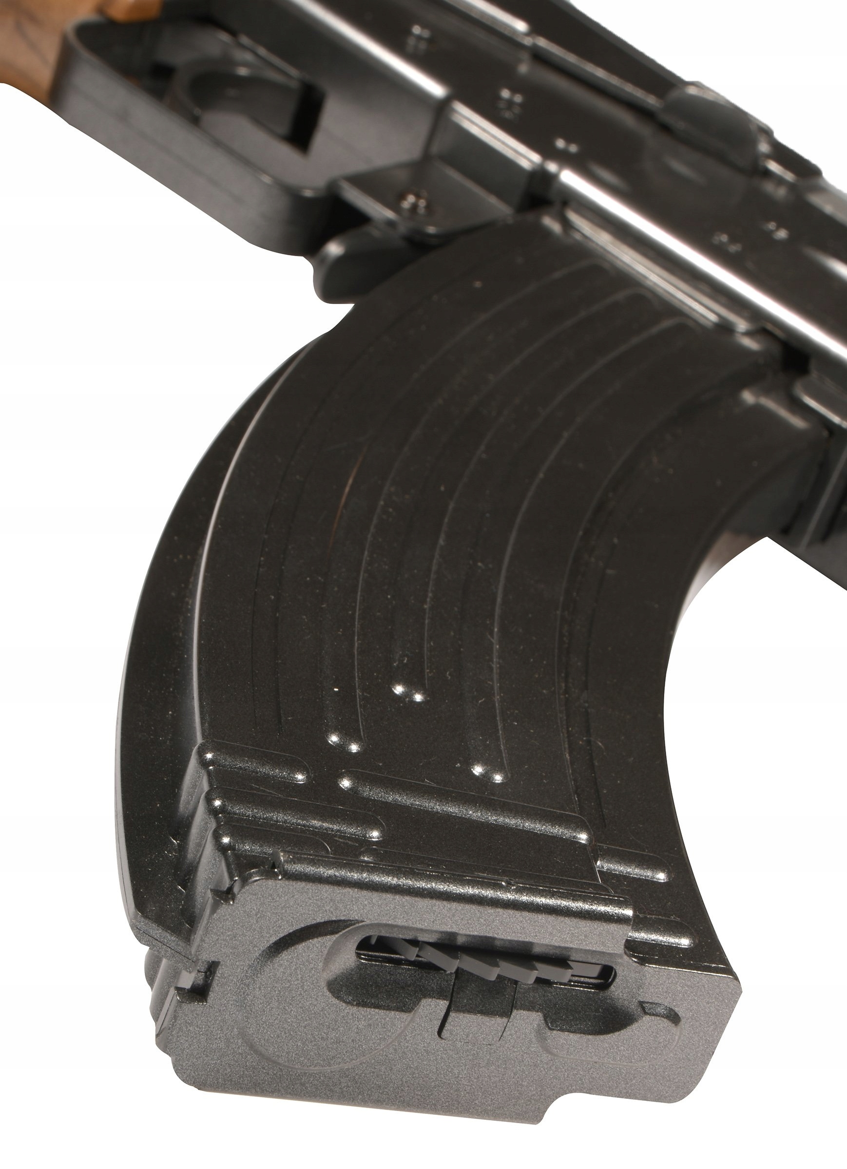 Zestaw zawiera broń, magazynek o łącznej pojemności 300 kulek.