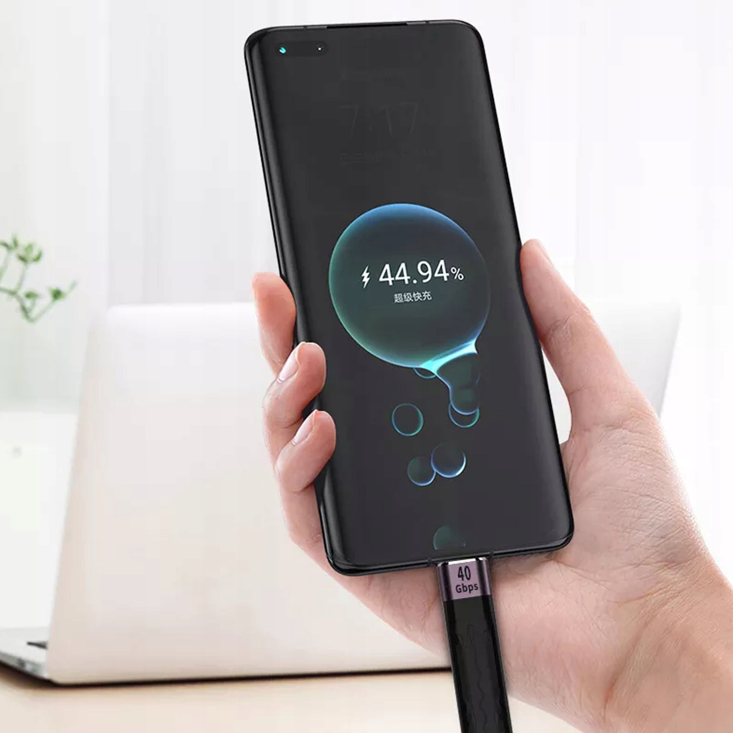 Najwyższej jakości kabel FPC USB typu C w standardzie USB 4.0 o długości 13.8cm, wyposażony w układ E-Marker Chip, umożliwiający transmisję danych z prędkością do 40 Gb/s oraz nieprawdopodobnie szybkie i bezpieczne ładowanie 20V / 5A.
