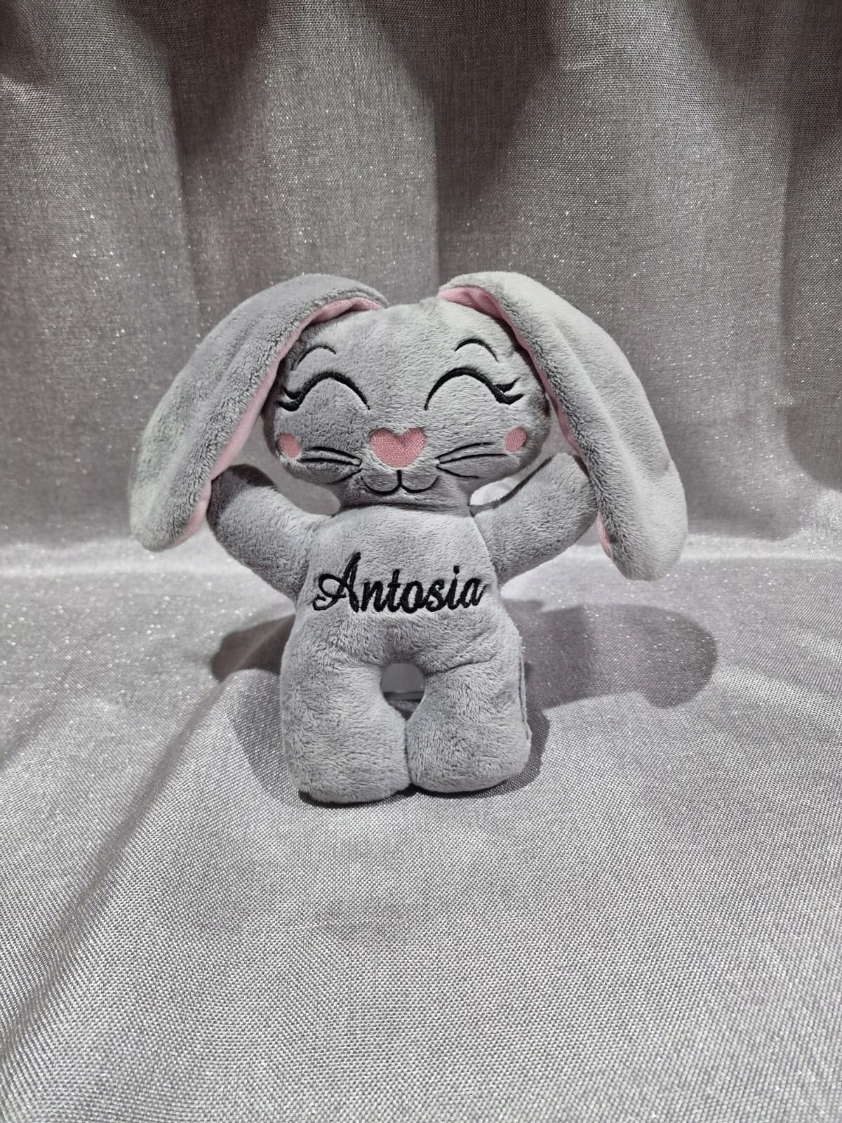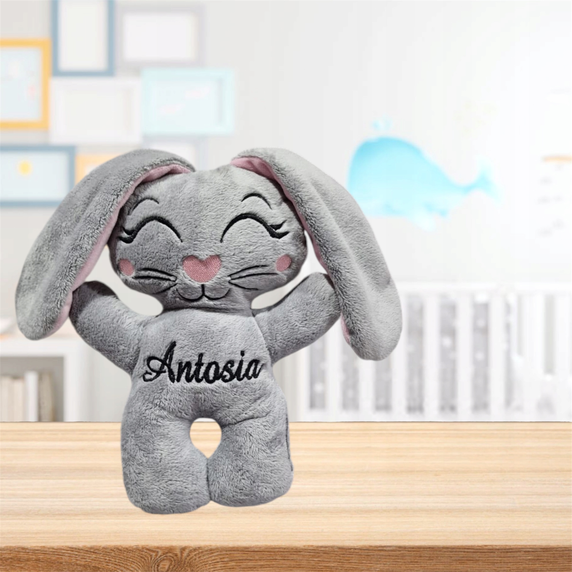 Produkt jest wykonany z bezpiecznych, antyalergicznych materiałów, co czyni go w pełni odpowiednim dla delikatnej skóry dziecka. Starannie wykonany haft i dbałość o szczegóły sprawiają, że króliczek będzie wytrzymały i odporny na codzienne przytulanie i zabawy. To prezent, który łączy w sobie estetykę, funkcjonalność i indywidualne podejście – idealny dla malucha i jego rodziców.