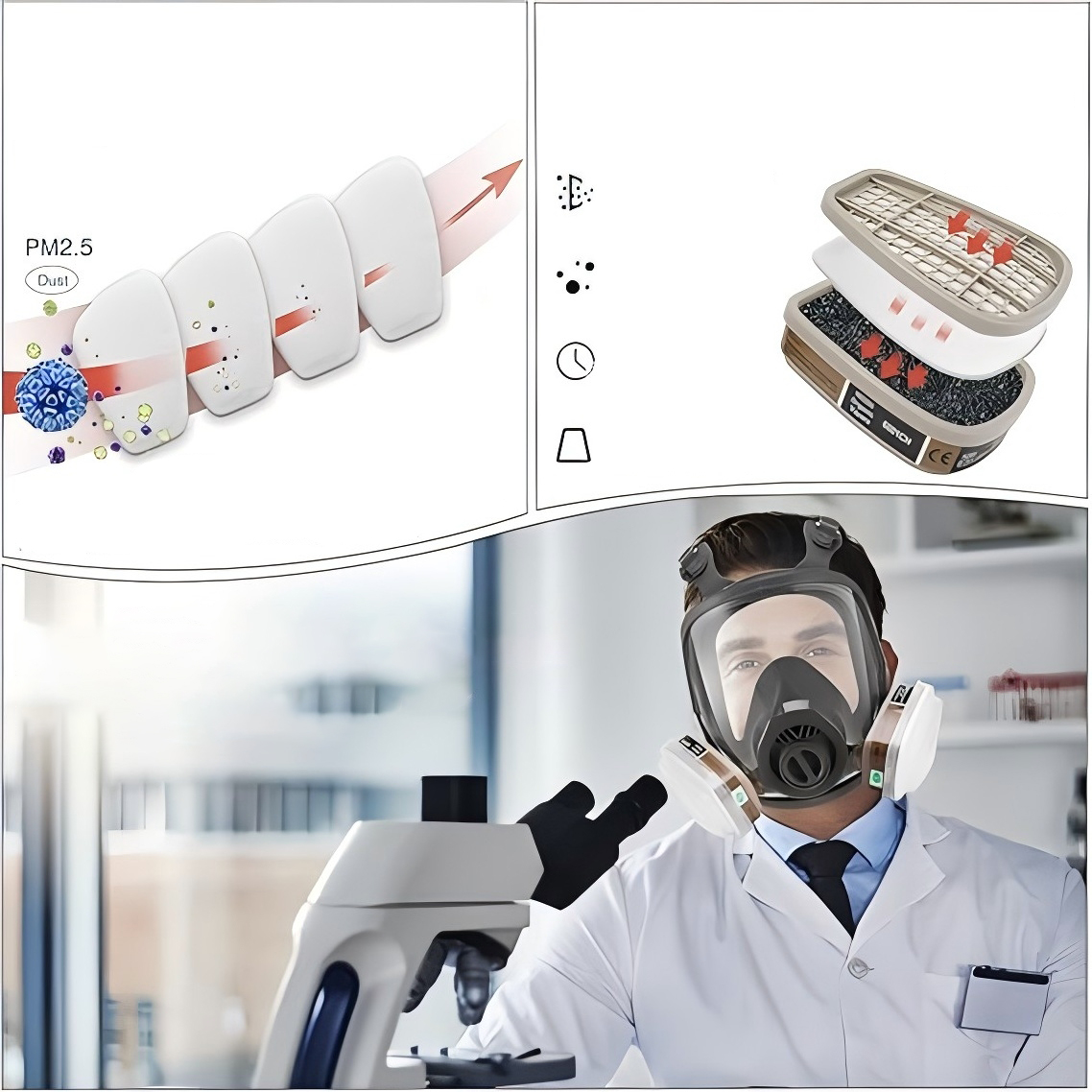 Nadaje się do obszarów roboczych zawierających chemikalia, metale, farby, formaldehydy i inne drażniące opary.