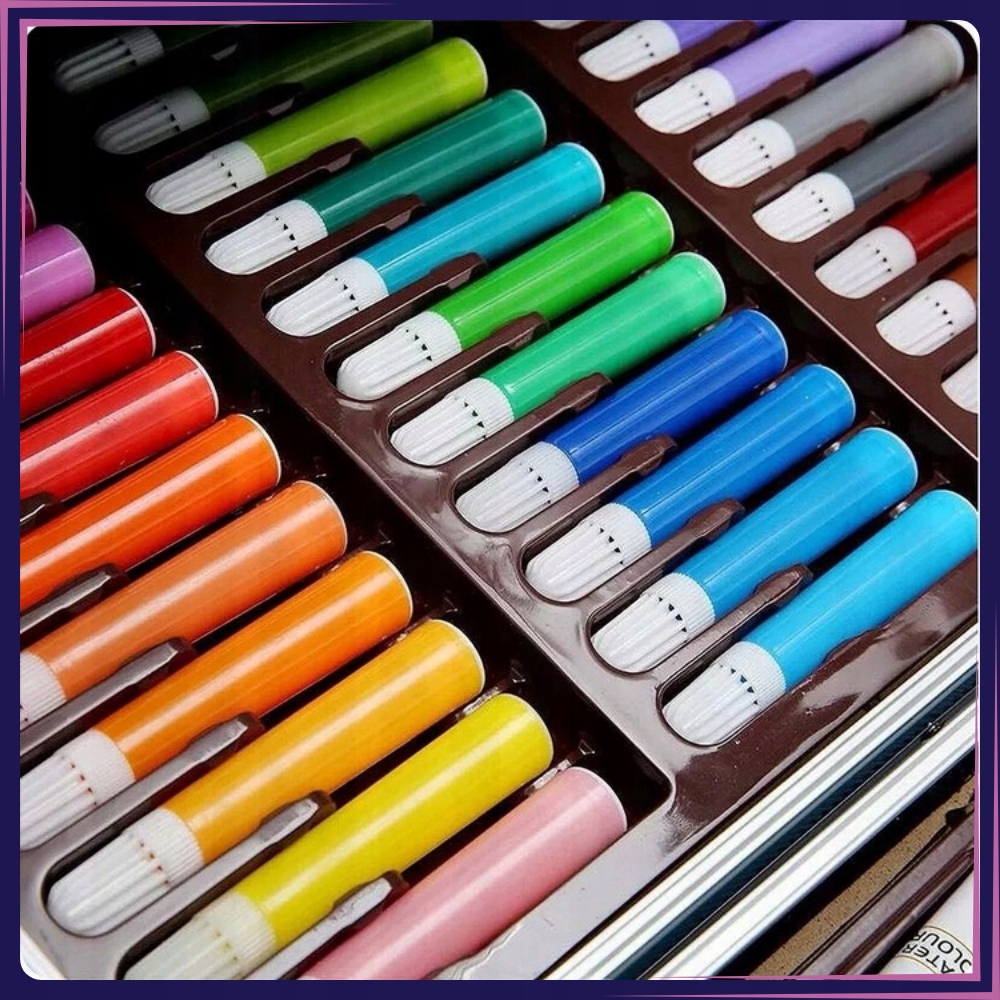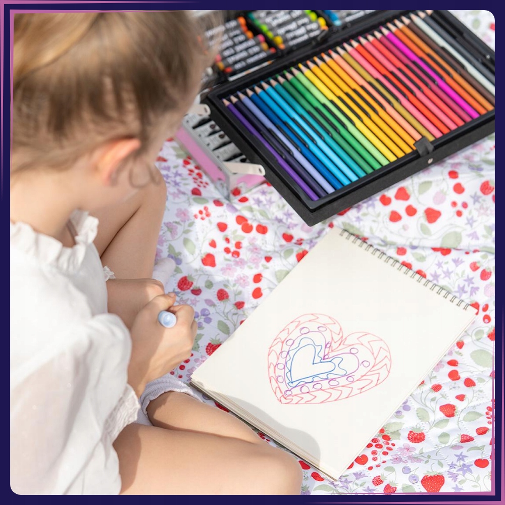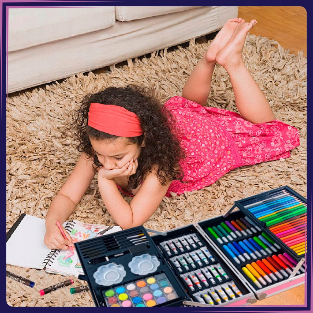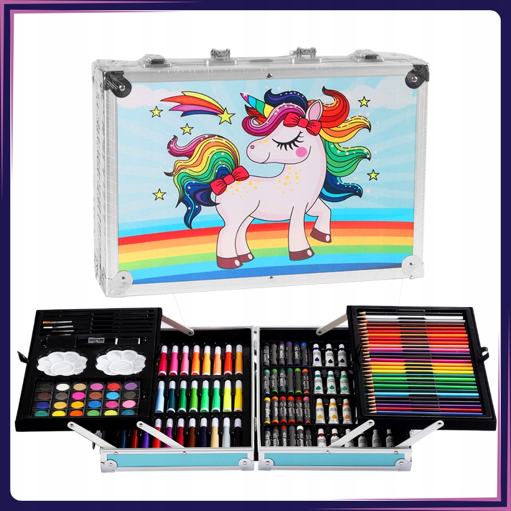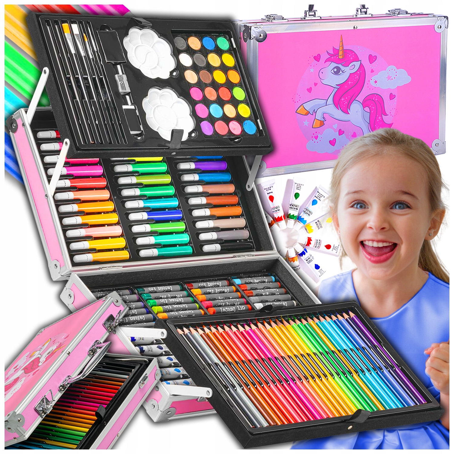 Zestaw artystyczny to szeroki wybór akcesoriów do malowania i rysowania zamknięty w estetycznej walizce do przenoszenia.