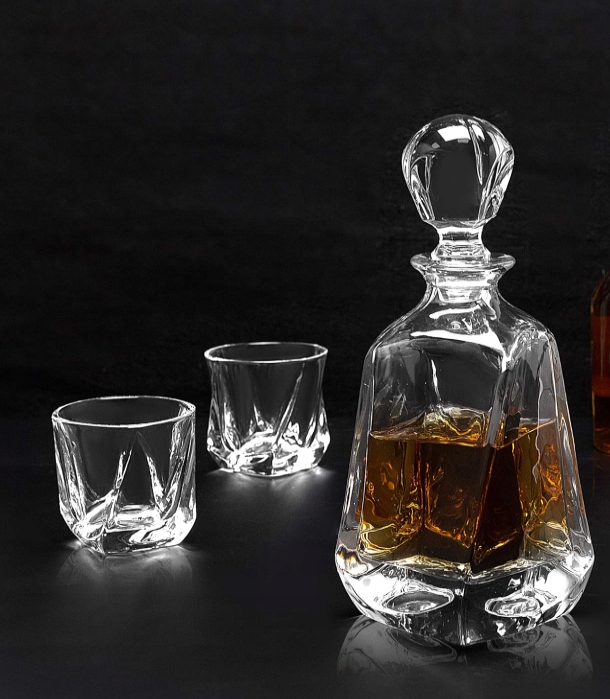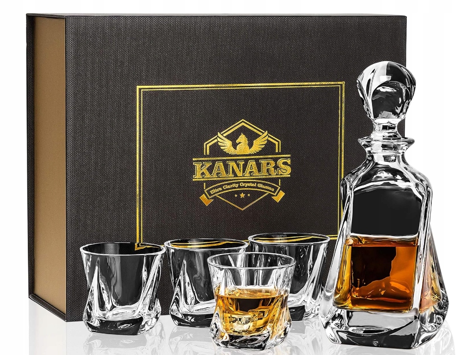 ❤️❤️Zestaw KANARS to elegancka propozycja dla miłośników whisky i innych alkoholi, idealnie łącząca klasyczny design z luksusowym wykończeniem. Każda z czterech kwadratowych szklanek o pojemności 210 ml oraz solidna karafka 650 ml zostały wykonane z wysokiej jakości szkła bezołowiowego. ❤️Wygodny w użyciu oraz nadający się do mycia w zmywarce, zestaw ten jest idealnym wyborem zarówno do codziennego użytku, jak i na specjalne okazje