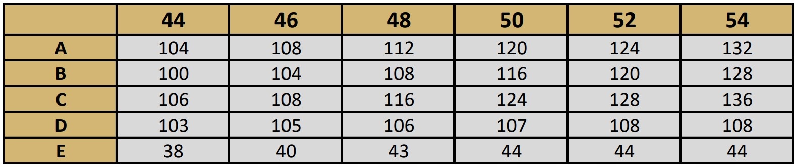 TABELA ROZMIARÓW - POMIARY NA PŁASKO: